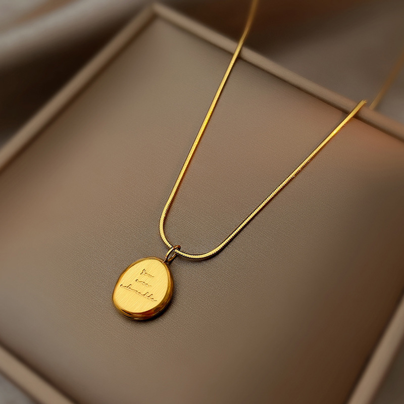 跨境批发英文字母椭圆牌钛钢不掉色项链女2023年新款高级感锁骨链 投诉