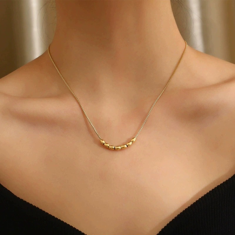 2025新款时尚小众简约圆珠设计镀金18K钛钢日常百搭项链批发