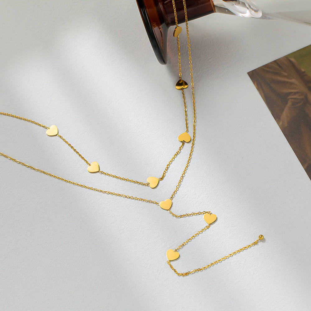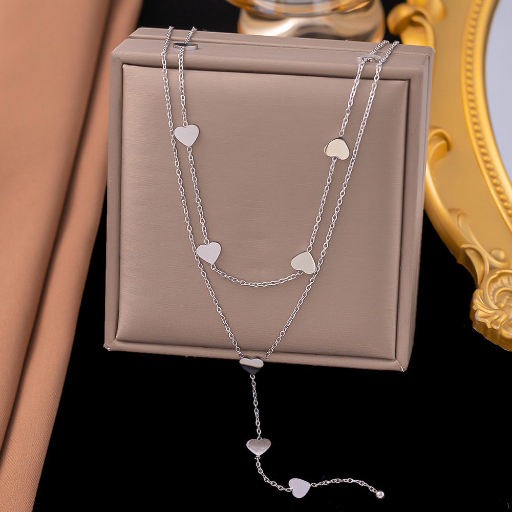【多层系列】欧美跨境批发外贸爆款双层爱心流苏幸运草钛钢双层链