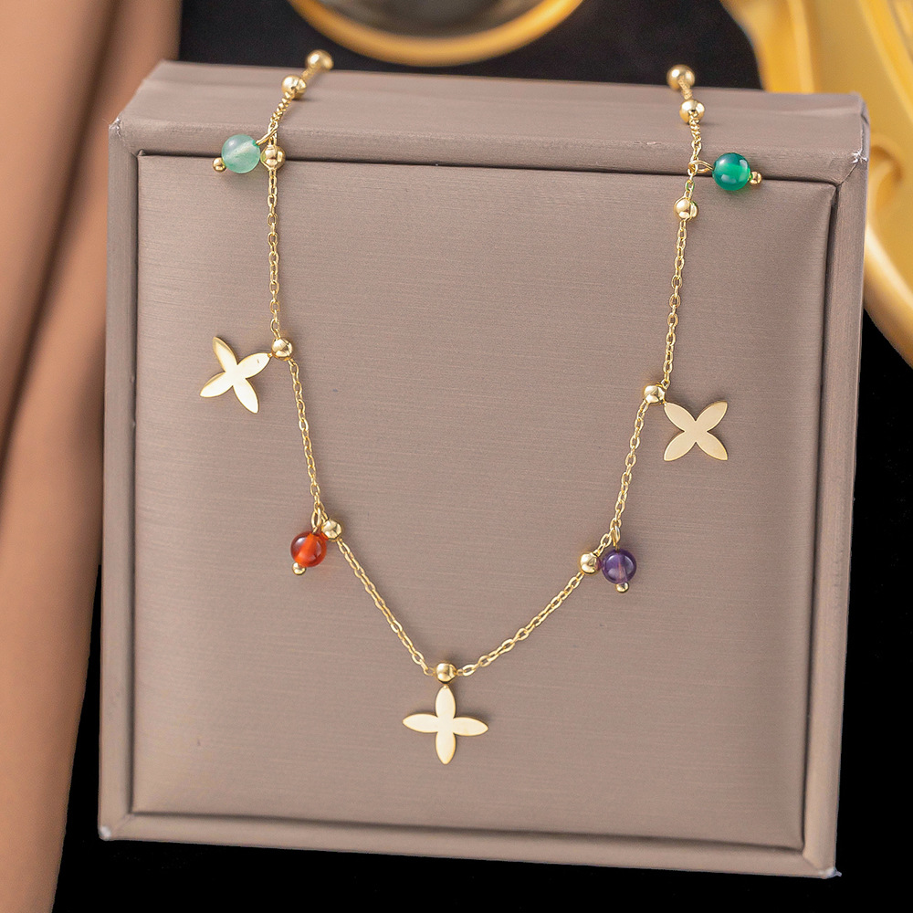 十字架天然石流苏吊坠项链手链脚链不锈钢项链女跨境外贸时尚饰品