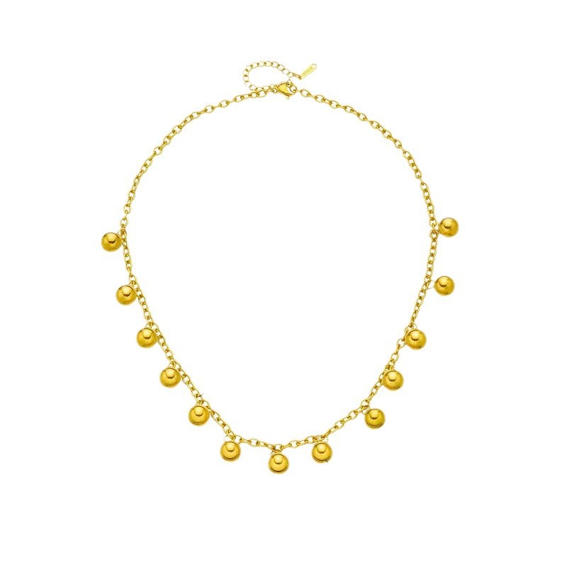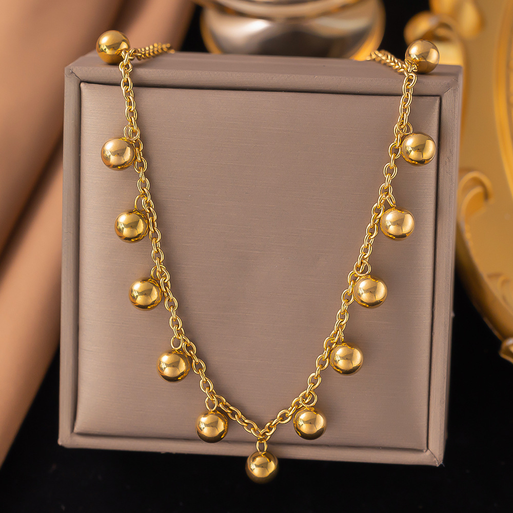 欧美跨境批发时尚钛钢项链金珠吊坠不掉色小众锁骨链女高级感轻奢