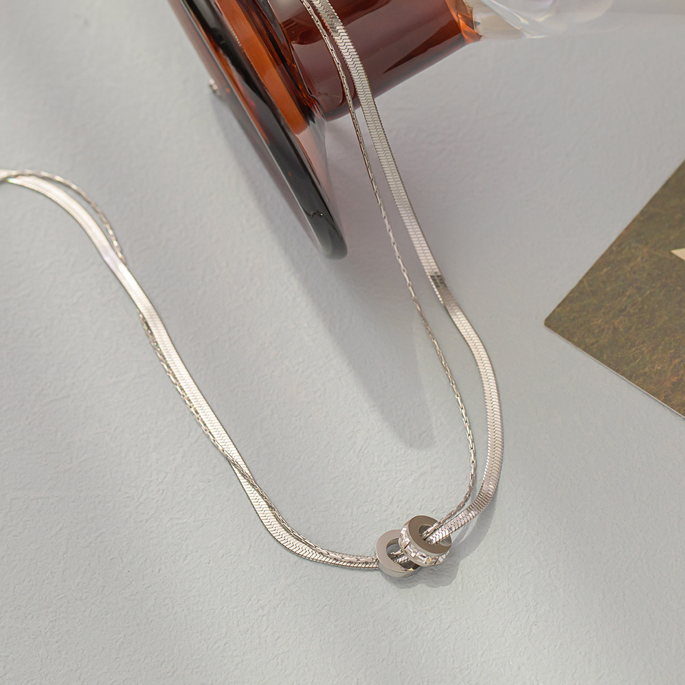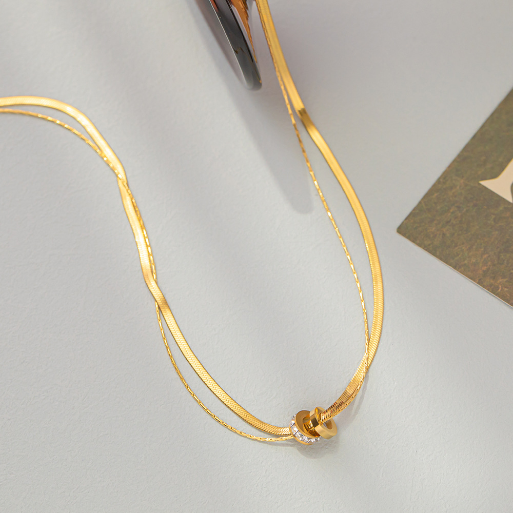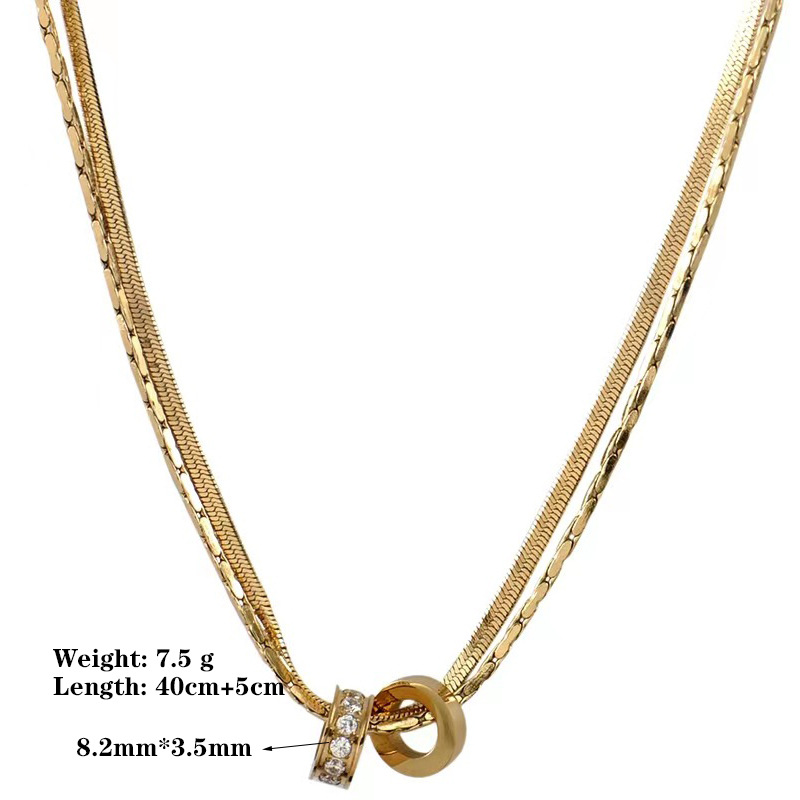 欧美跨境钛钢项链女满钻圆环吊坠时尚百搭高级感双层蛇骨链不掉色 投诉