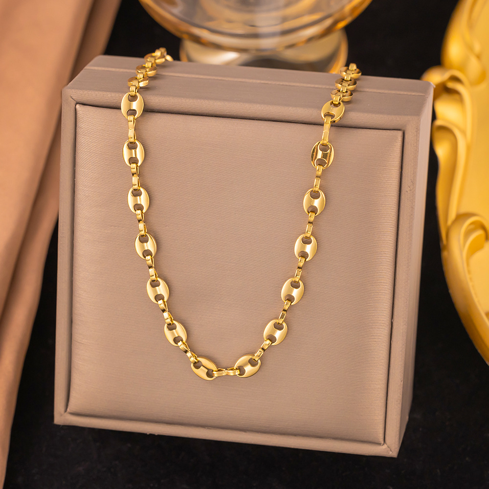 欧美跨境新款猪鼻子不锈钢项链女小众轻奢高级感时尚锁骨链批发 投诉