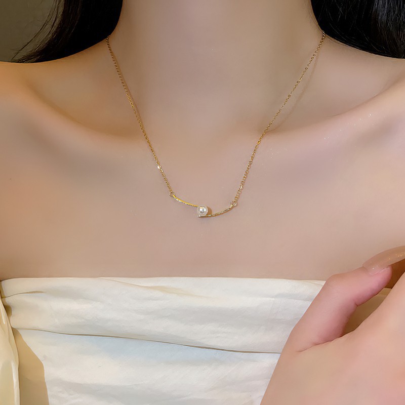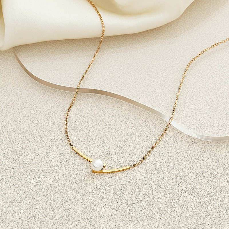跨境批发高级感简约交叉珍珠钛钢项链女锁骨链夏季新款颈链不掉色 投诉