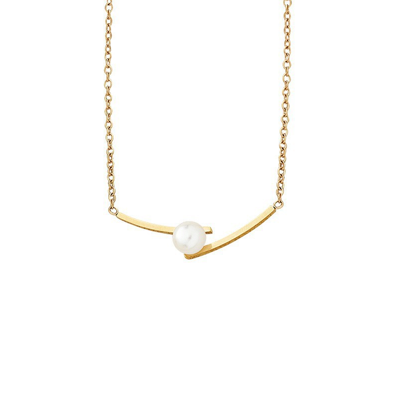 跨境批发高级感简约交叉珍珠钛钢项链女锁骨链夏季新款颈链不掉色