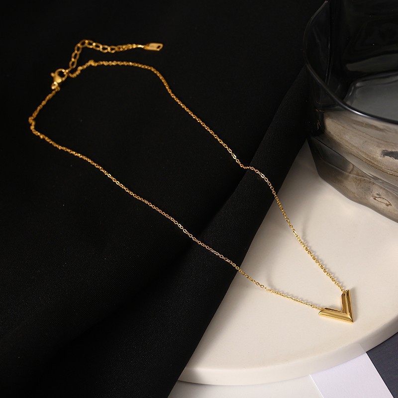跨境批发 韩版时尚V字母钛钢不掉色项链女简约个性字母吊坠锁骨链