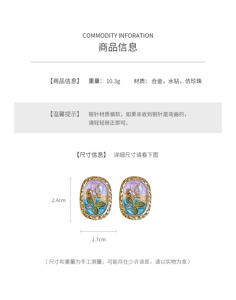 中古vintage耳环银针椭圆形滴油花朵珍珠镶钻耳钉轻奢高级感耳饰 投诉