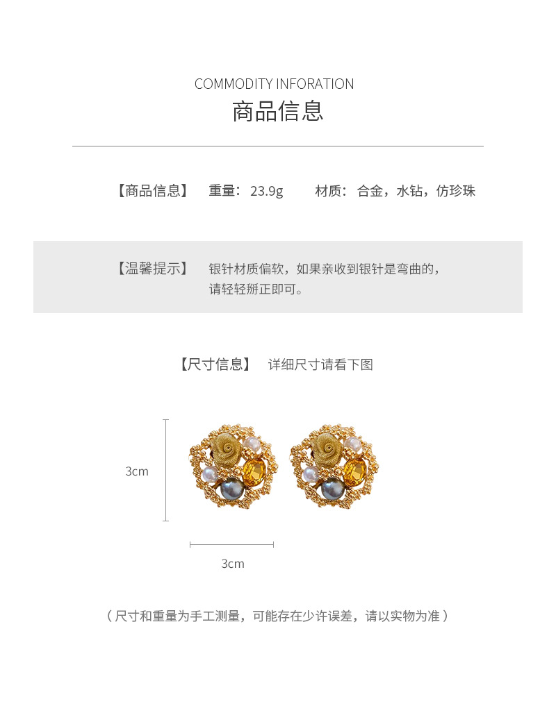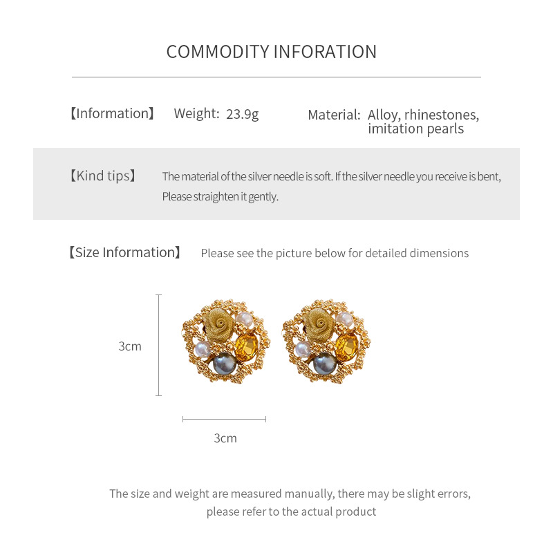 中古vintage轻奢时尚耳环银针镶钻花朵珍珠耳钉高级感复古耳饰女 投诉