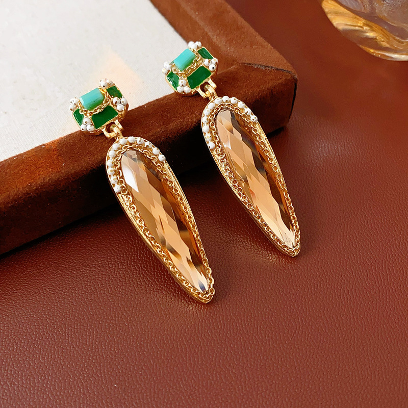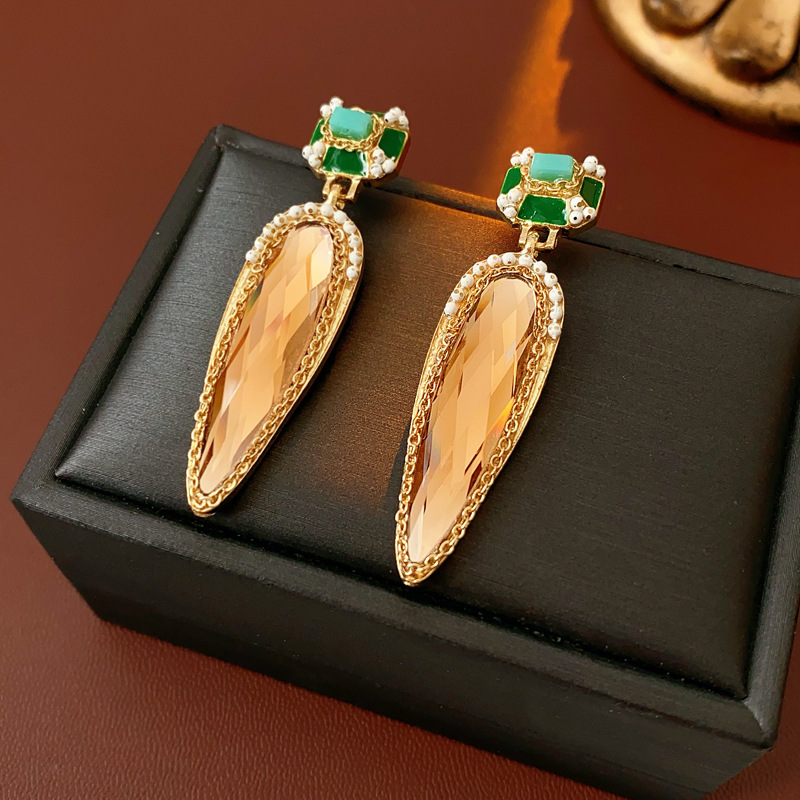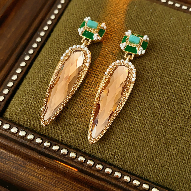 中古vintage水滴耳环银针镶钻滴油方形耳坠高级感复古夸张耳饰女 投诉