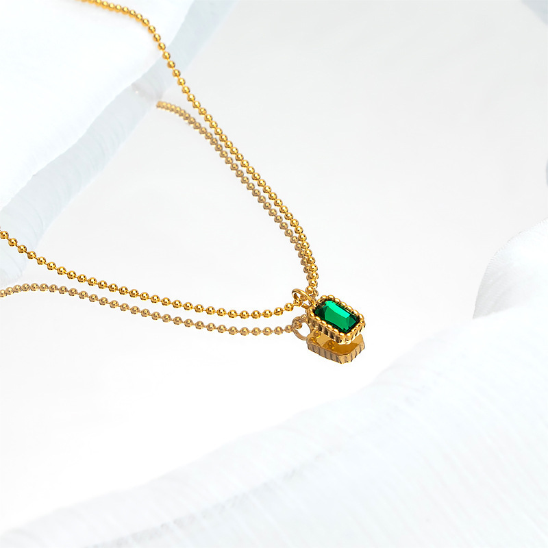新款祖母绿女项链吊坠饰品小众设计不掉色锁骨链项圈高级感首饰