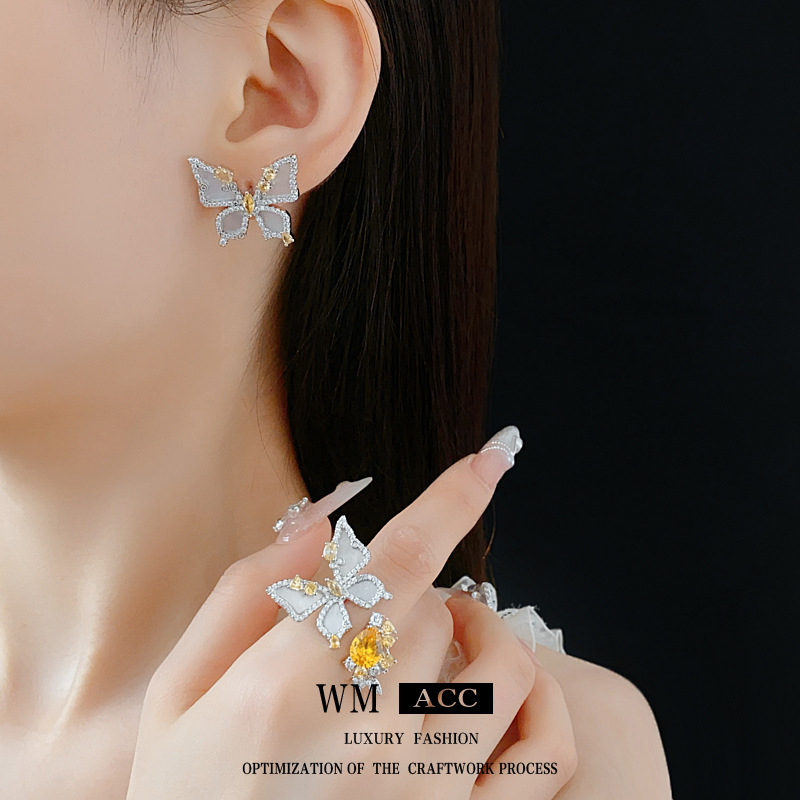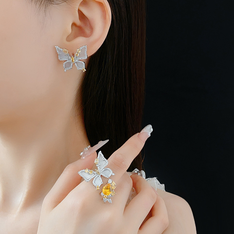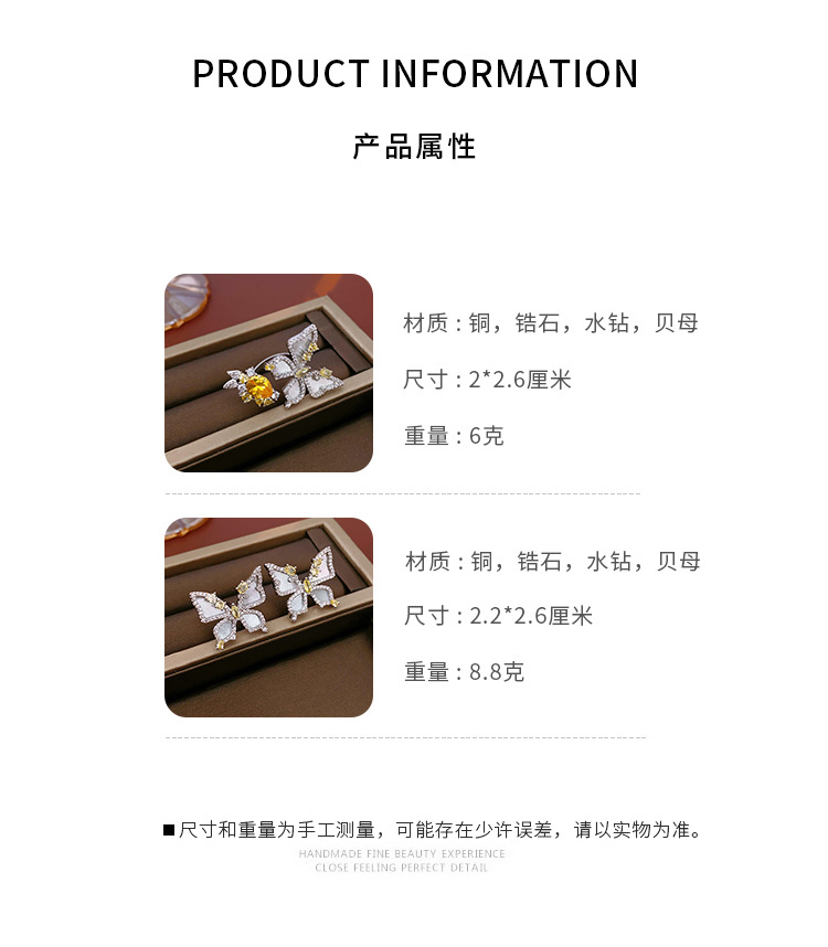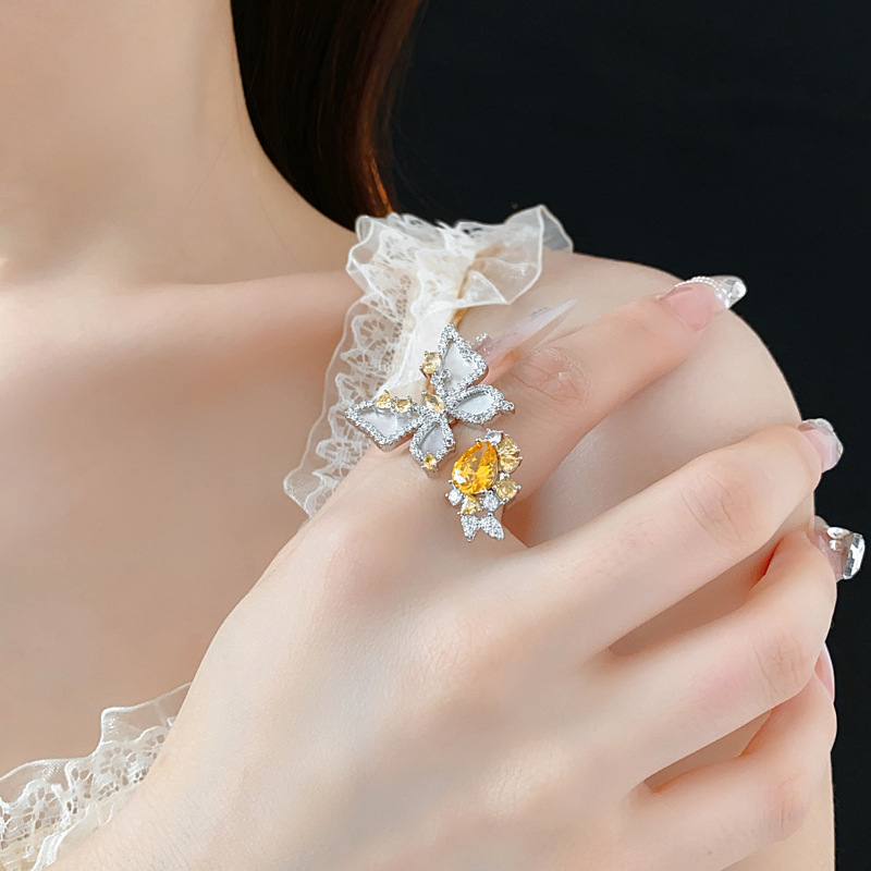 中古vintage蝴蝶开口戒指镶钻锆石花朵食指戒时尚轻奢高级感手饰 投诉