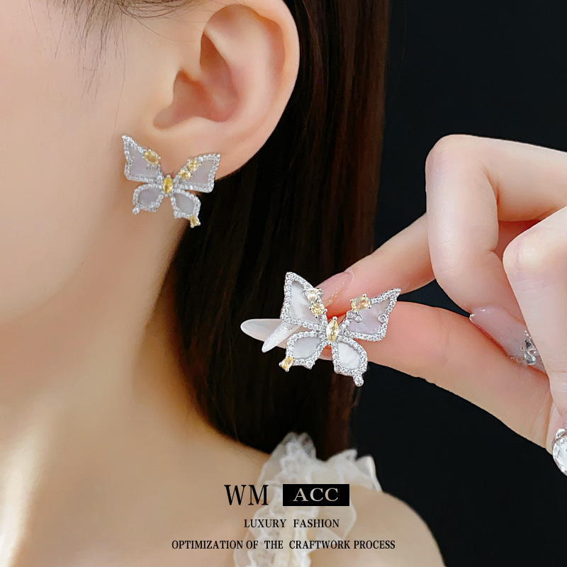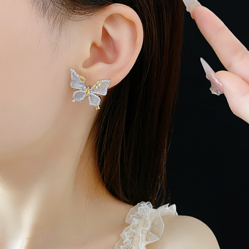 中古vintage蝴蝶开口戒指镶钻锆石花朵食指戒时尚轻奢高级感手饰
