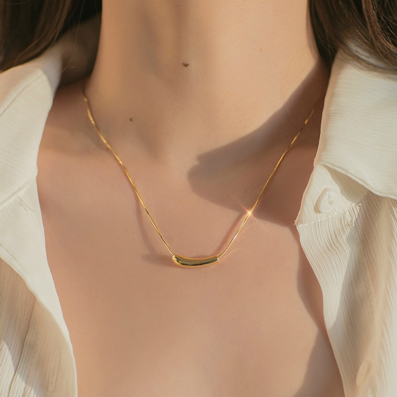 韩版不锈钢ins风百搭小众设计小茄子吊坠几何弯管钛钢锁骨链百搭