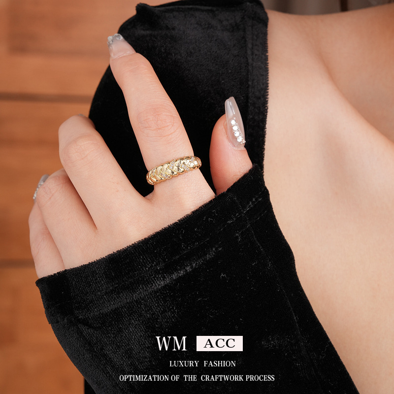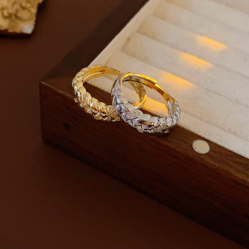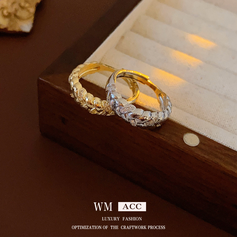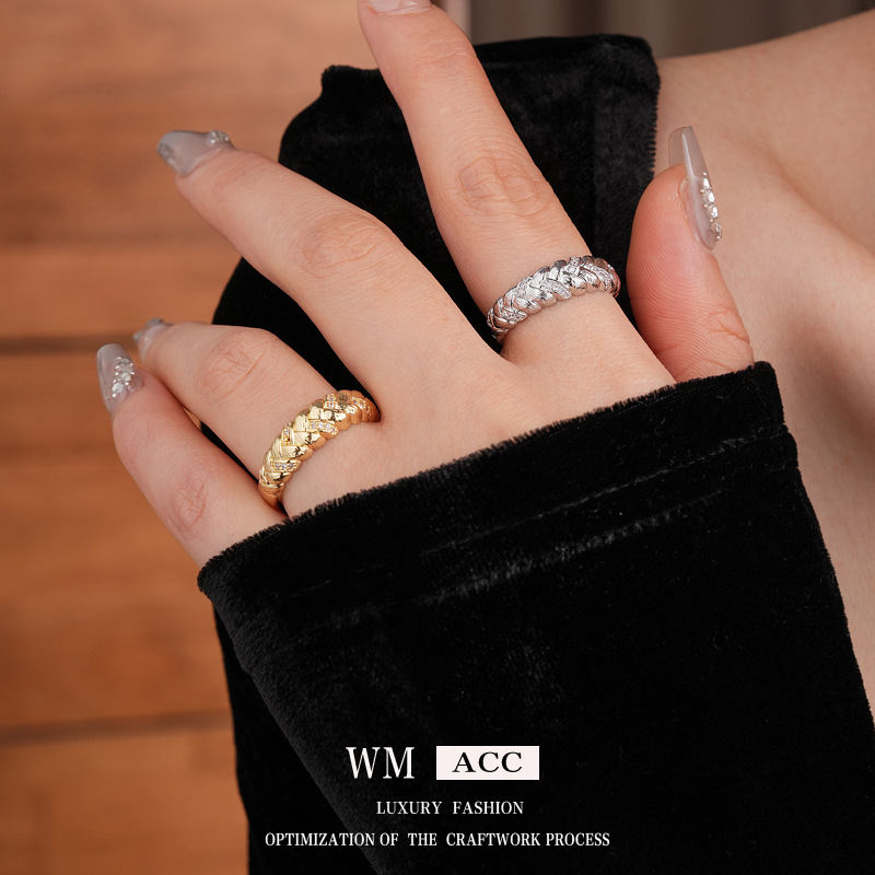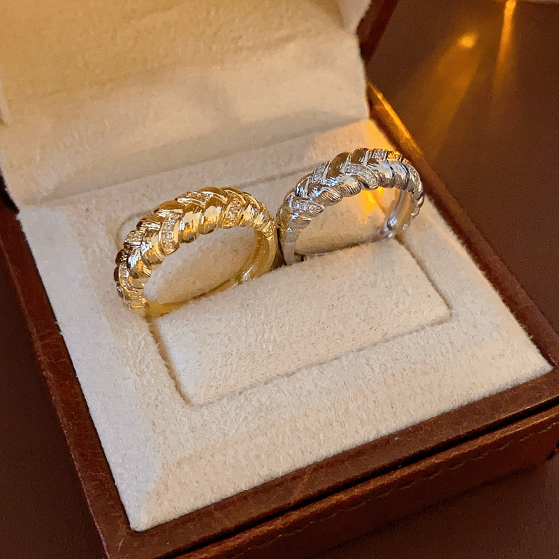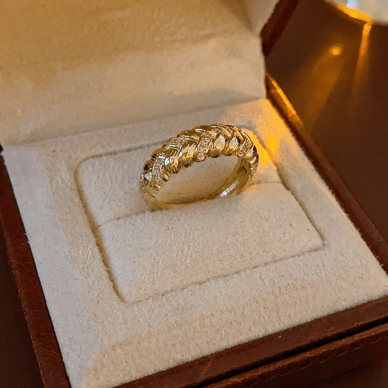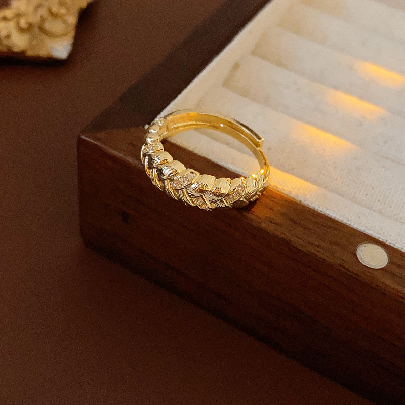 中古vintage麦穗戒指复古轻奢宫廷风锆石食指戒小众高级感手饰女