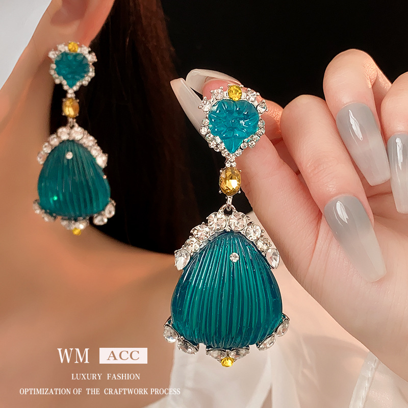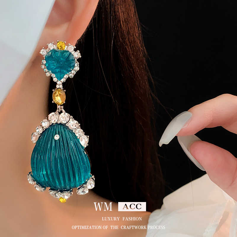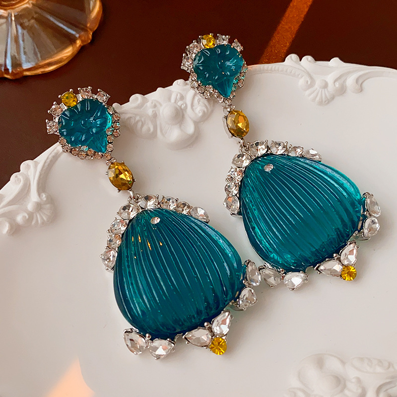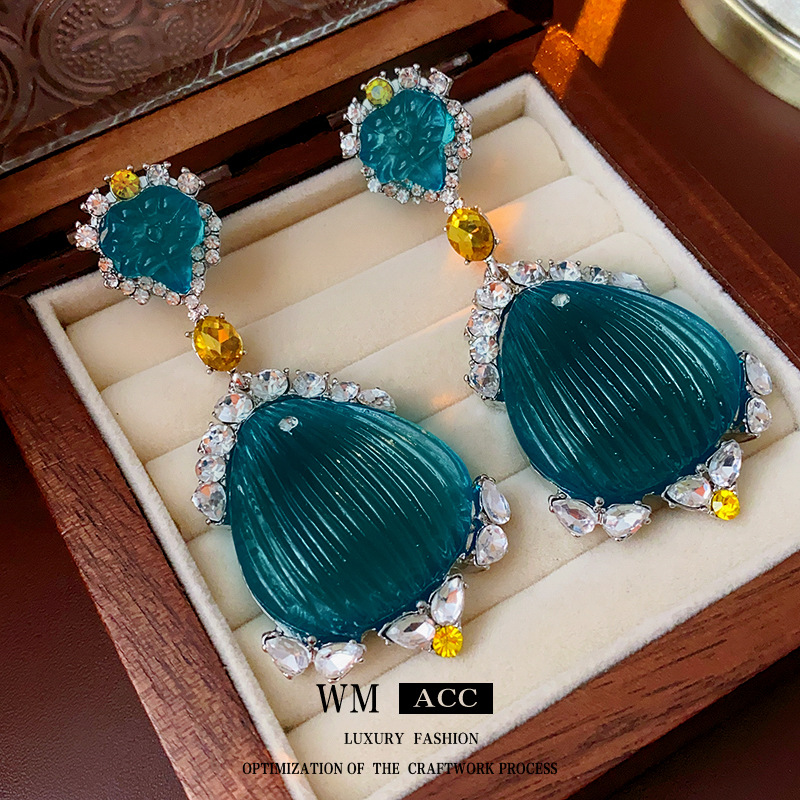 中古Vintage耳环银针镶钻贝壳设计感耳坠法式轻奢复古耳饰女批发 投诉