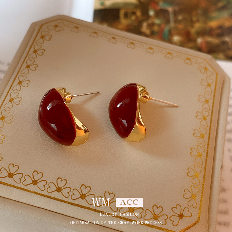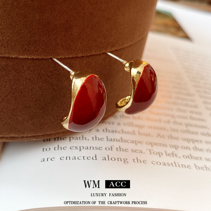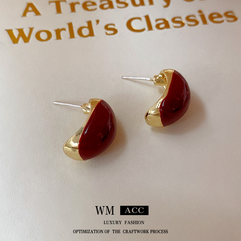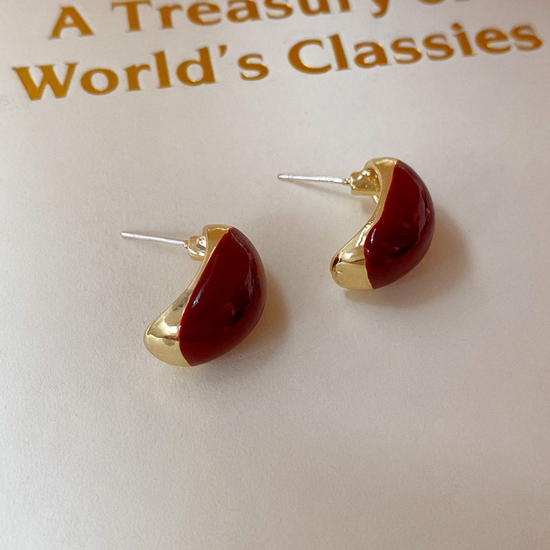 银针滴油金属豆豆耳钉简约复古气质耳环轻奢高级感耳饰厂家批发女