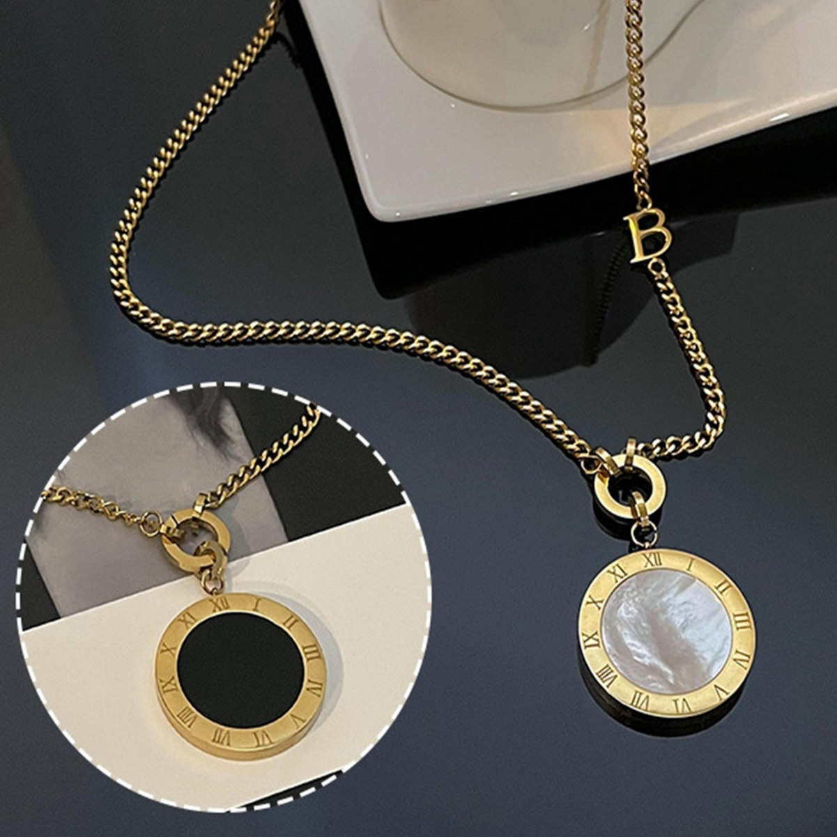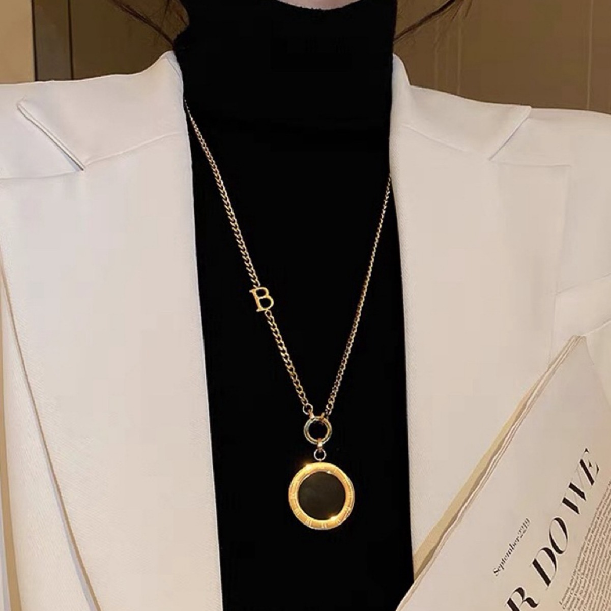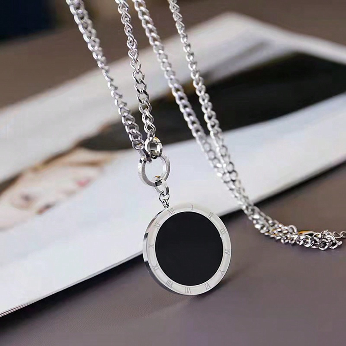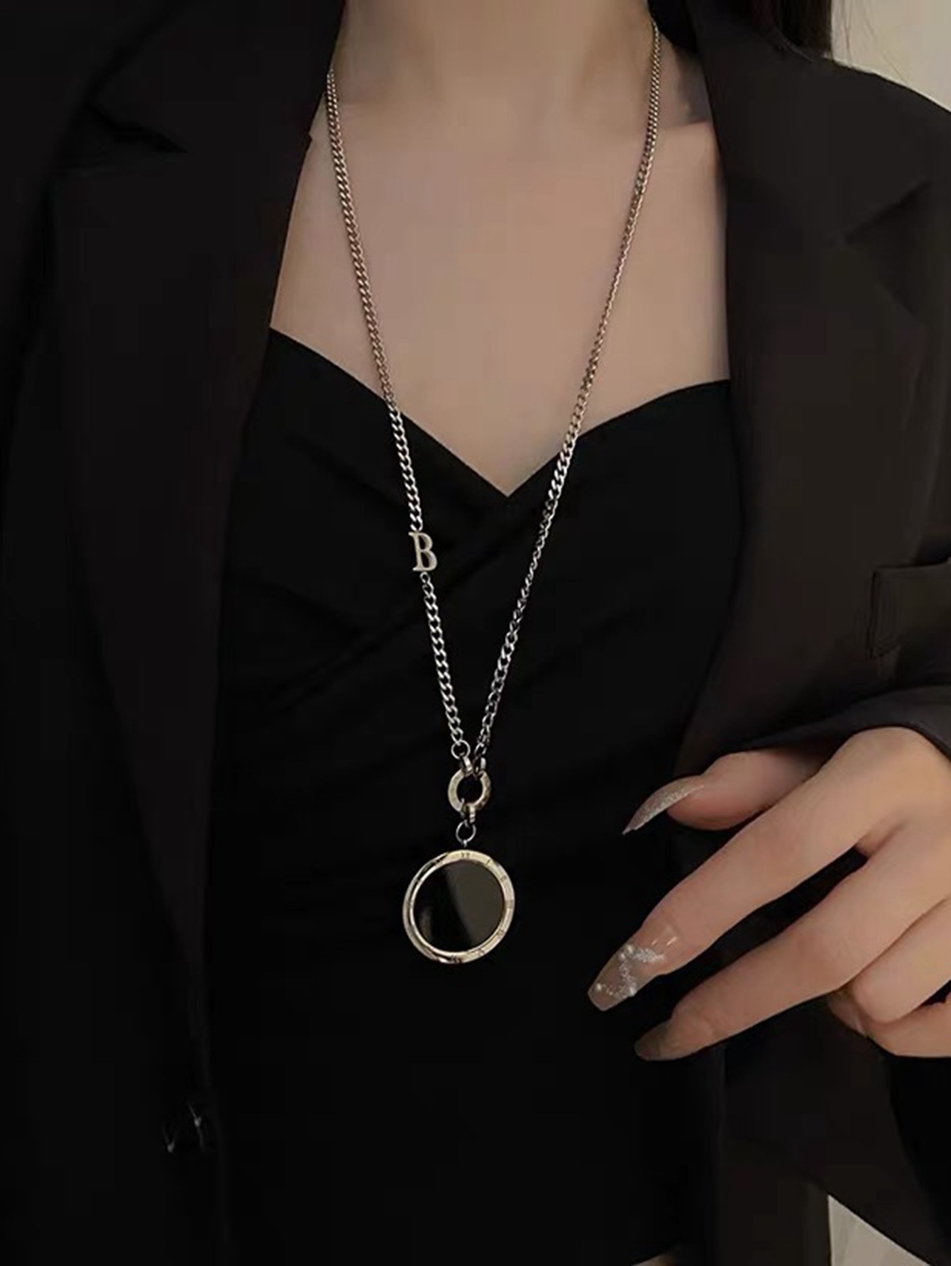 新款钛钢百搭项链配饰手工圆形镶嵌饰品秋冬首饰女流苏高级感吊坠