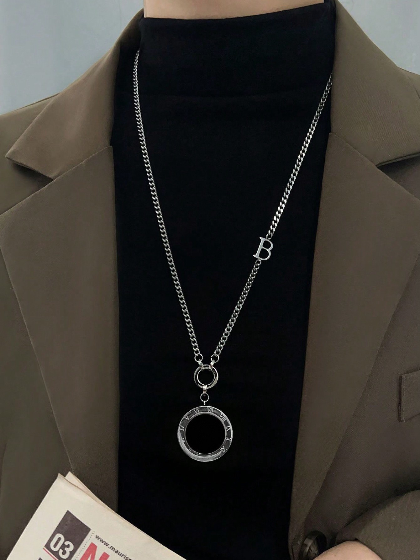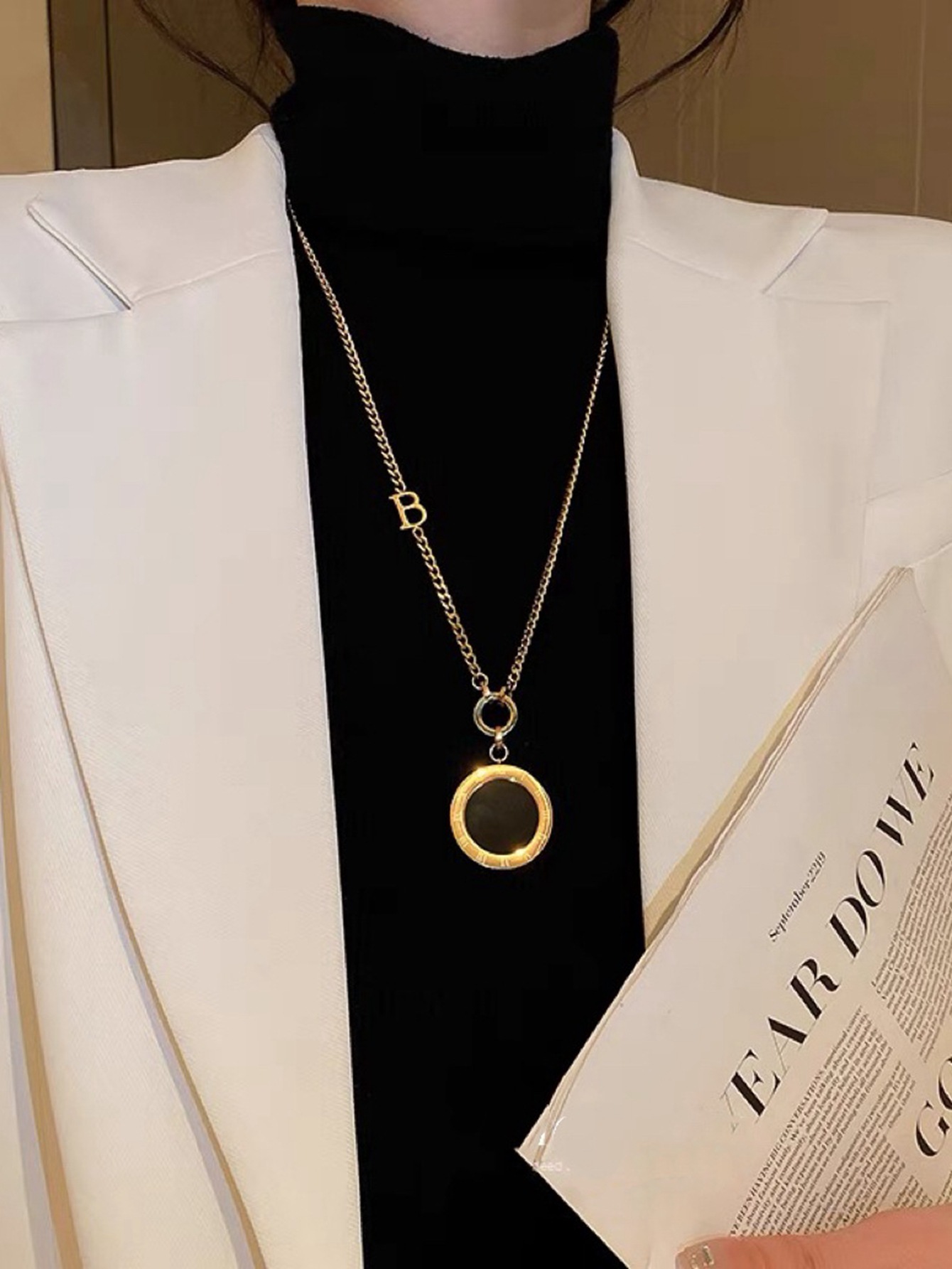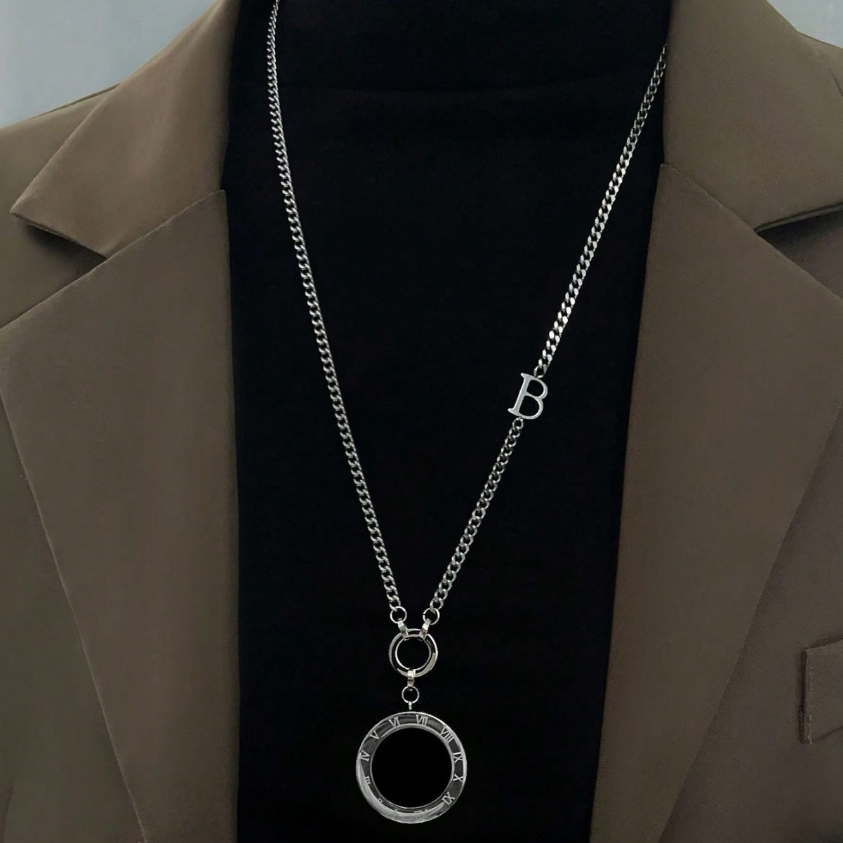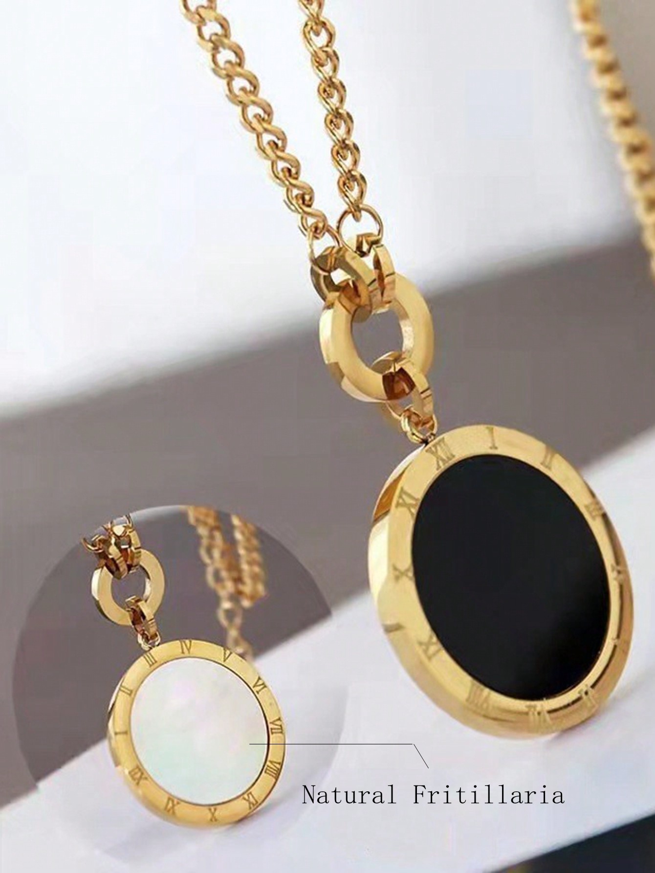 新款钛钢百搭项链配饰手工圆形镶嵌饰品秋冬首饰女流苏高级感吊坠