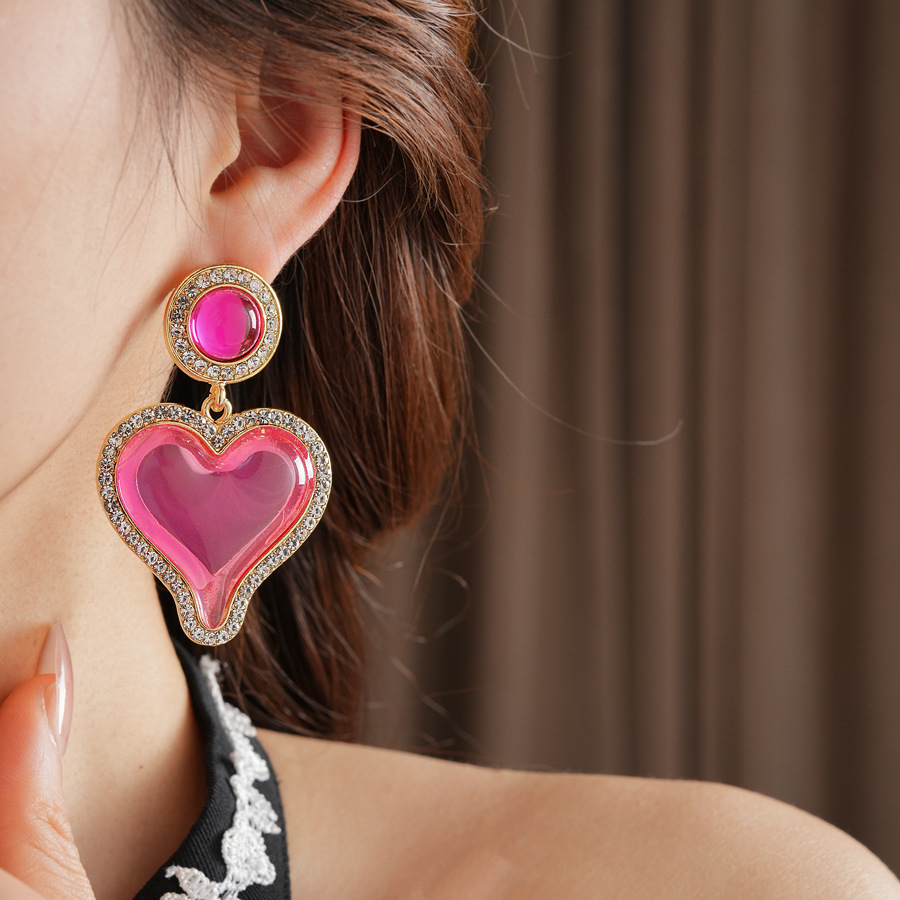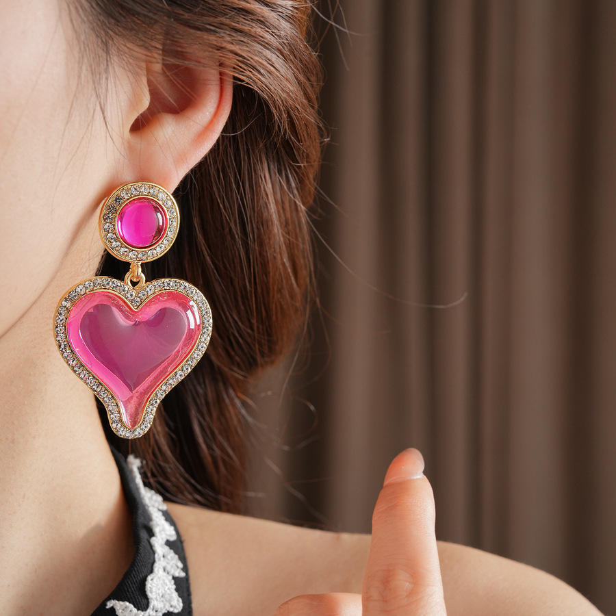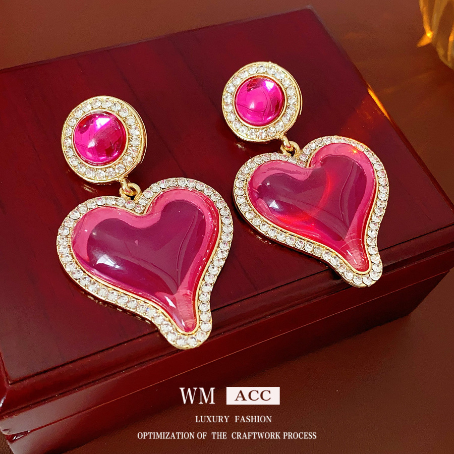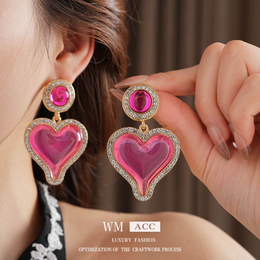 中古vintage轻奢耳环女银针镶钻爱心耳钉百搭高级感复古夸张耳饰