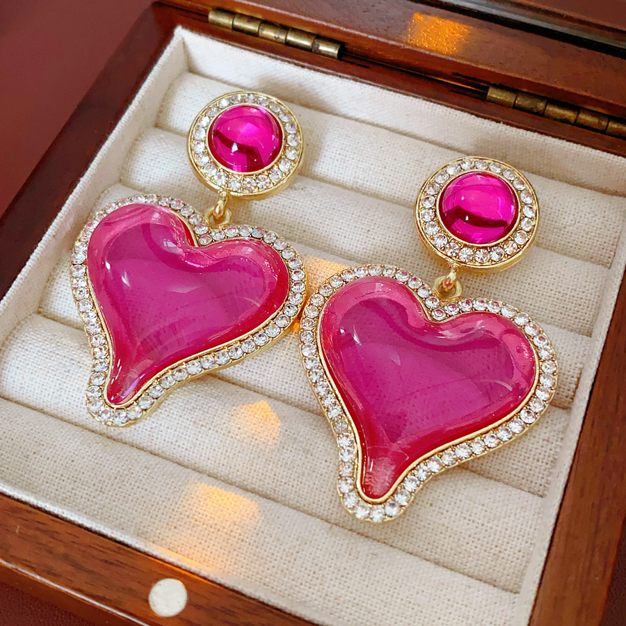中古vintage轻奢耳环女银针镶钻爱心耳钉百搭高级感复古夸张耳饰 投诉