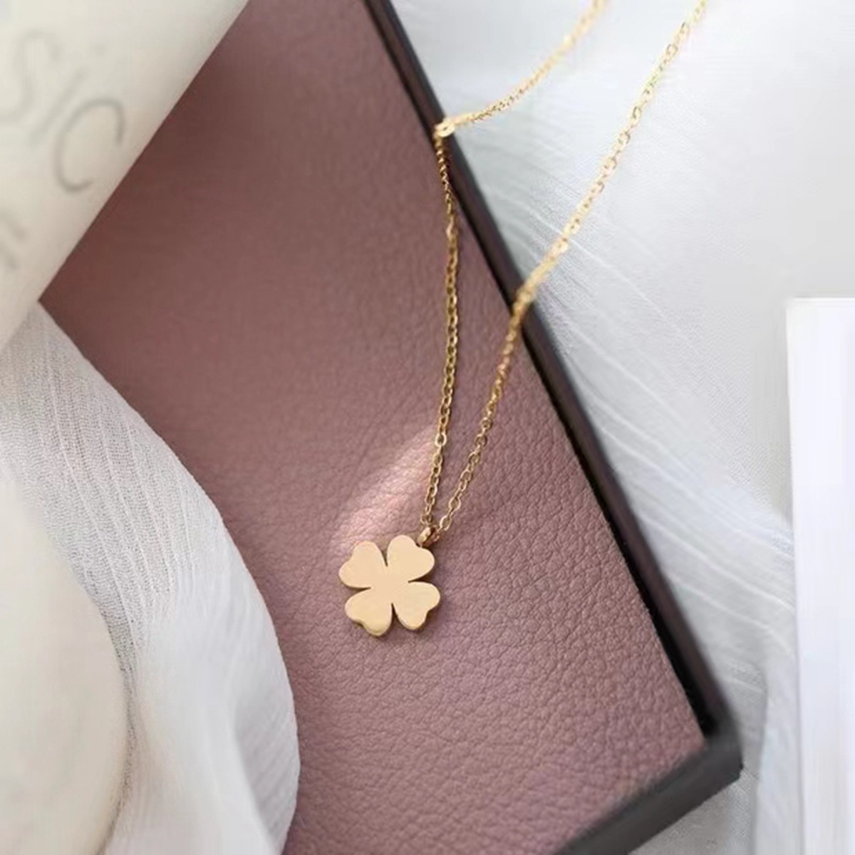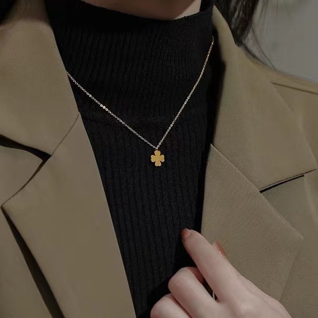 幸运草钛钢项链四叶草不掉色锁骨链女简约轻奢小众幸运配饰可加长