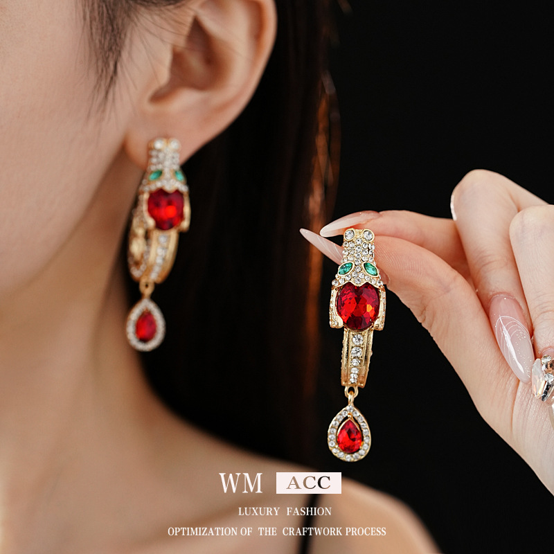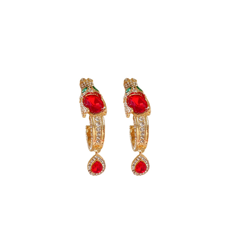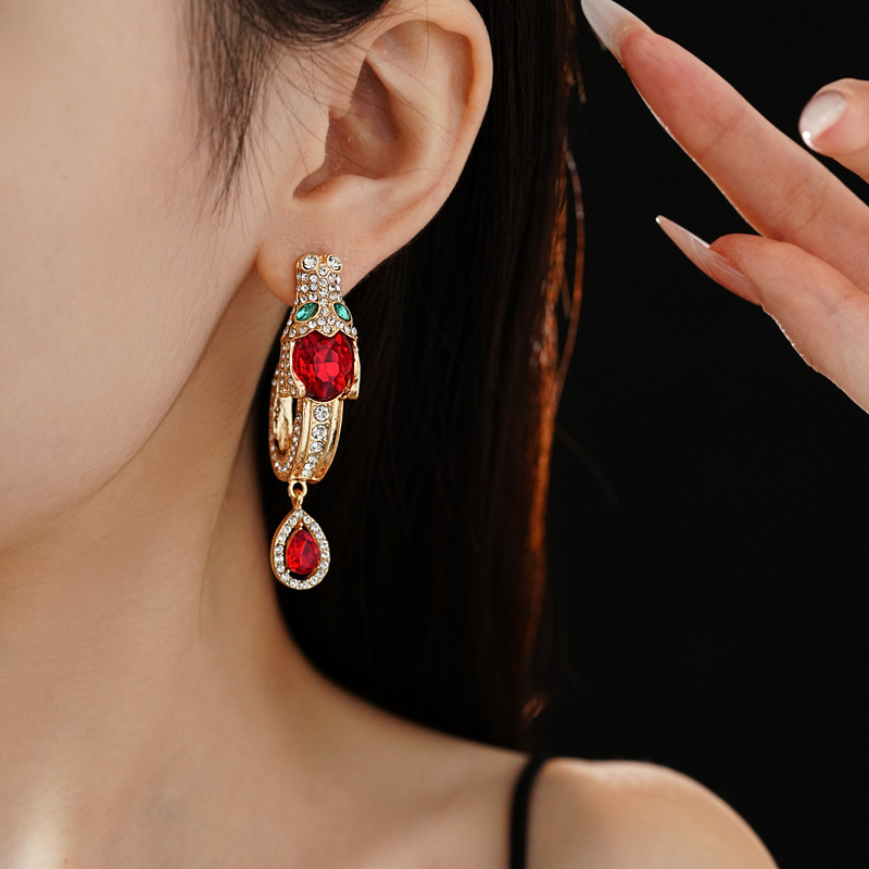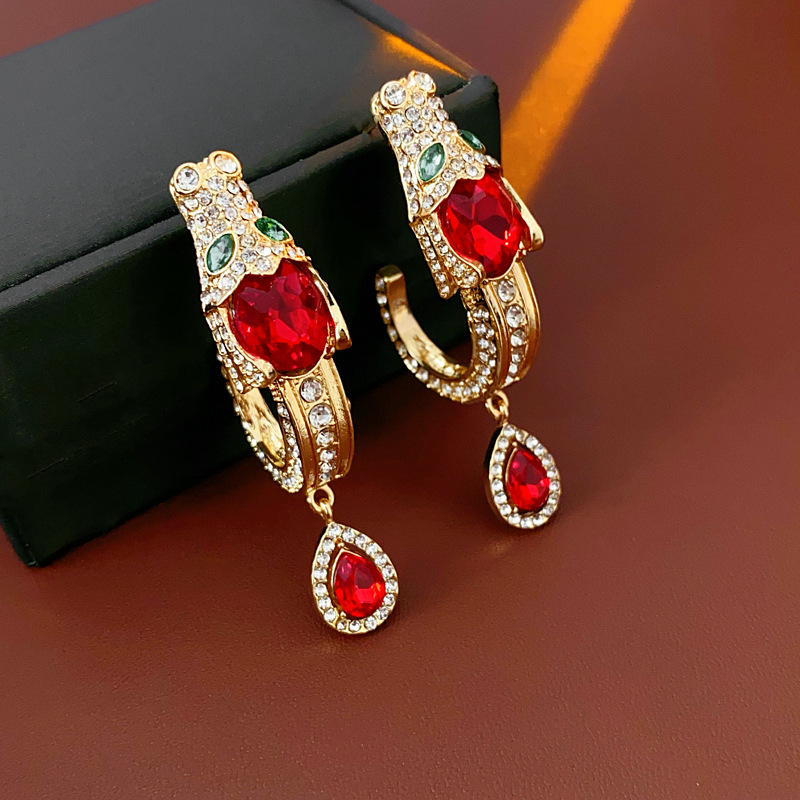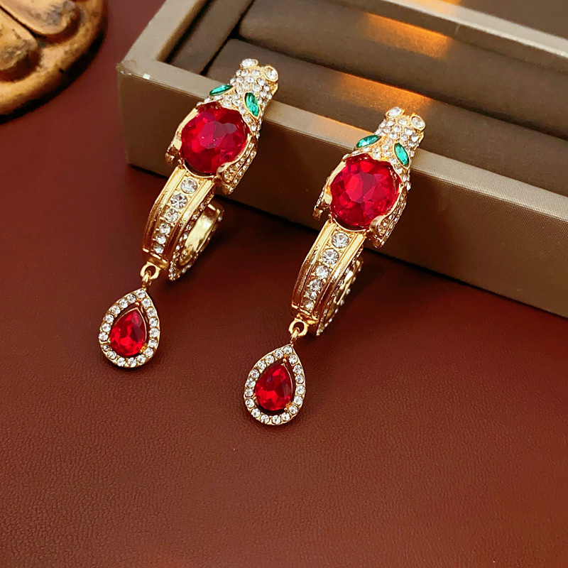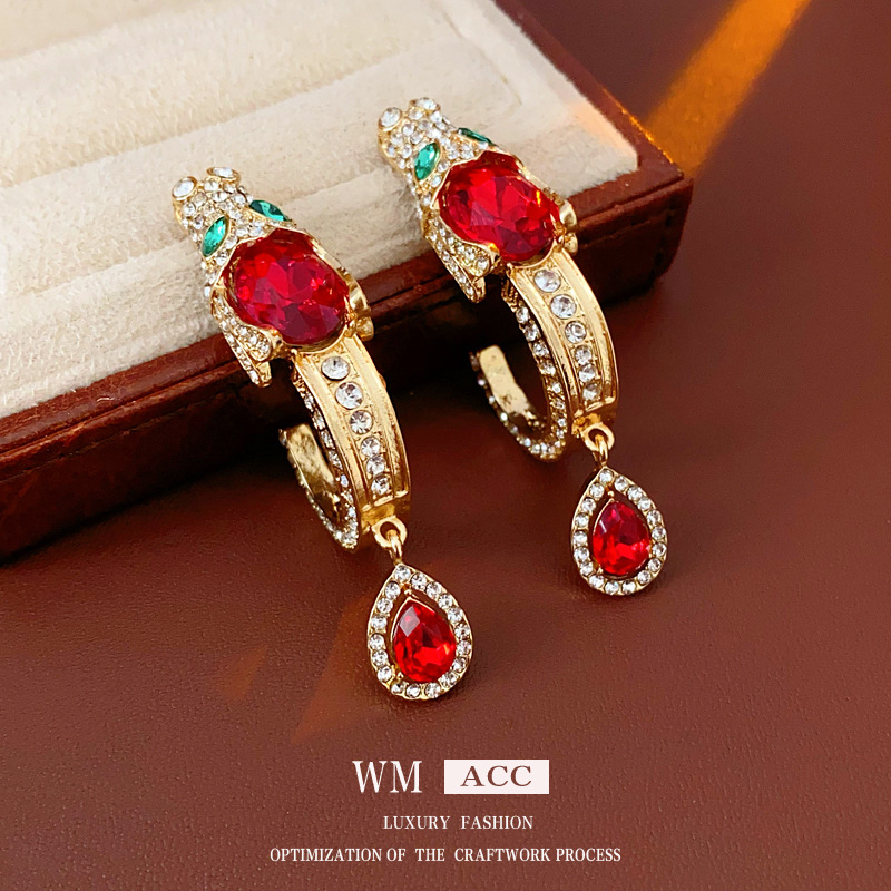 中古vintage银针耳环镶钻龙头水滴耳钉气质轻奢高级感复古耳饰女 投诉