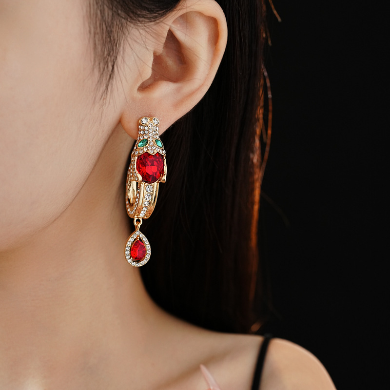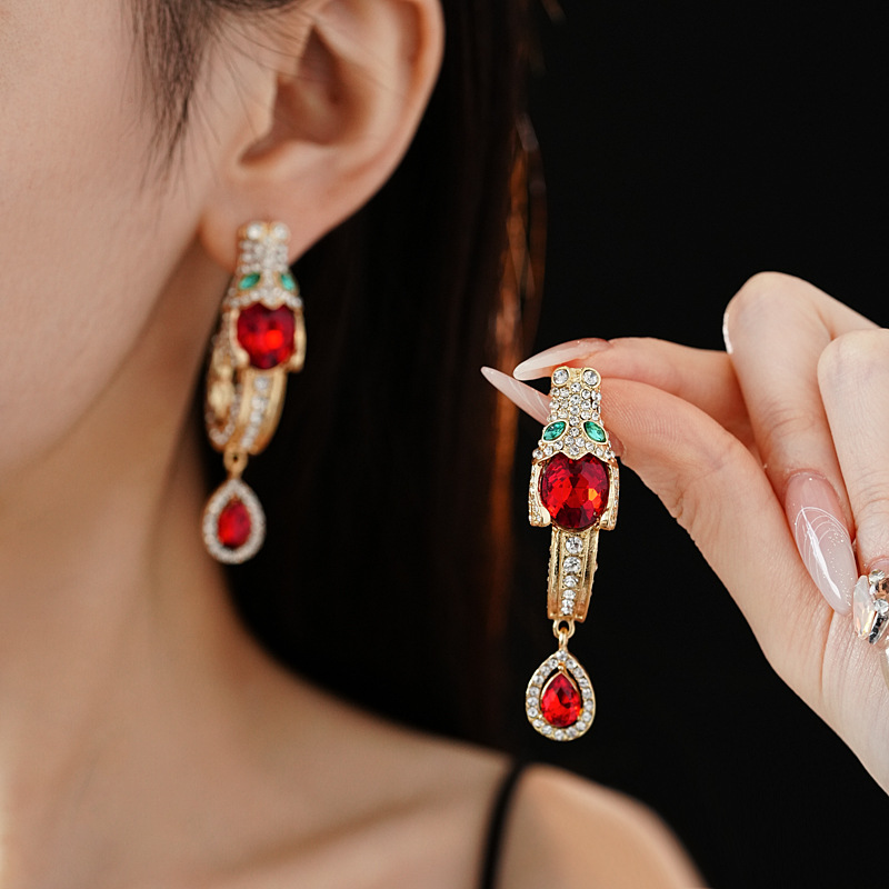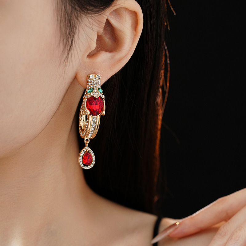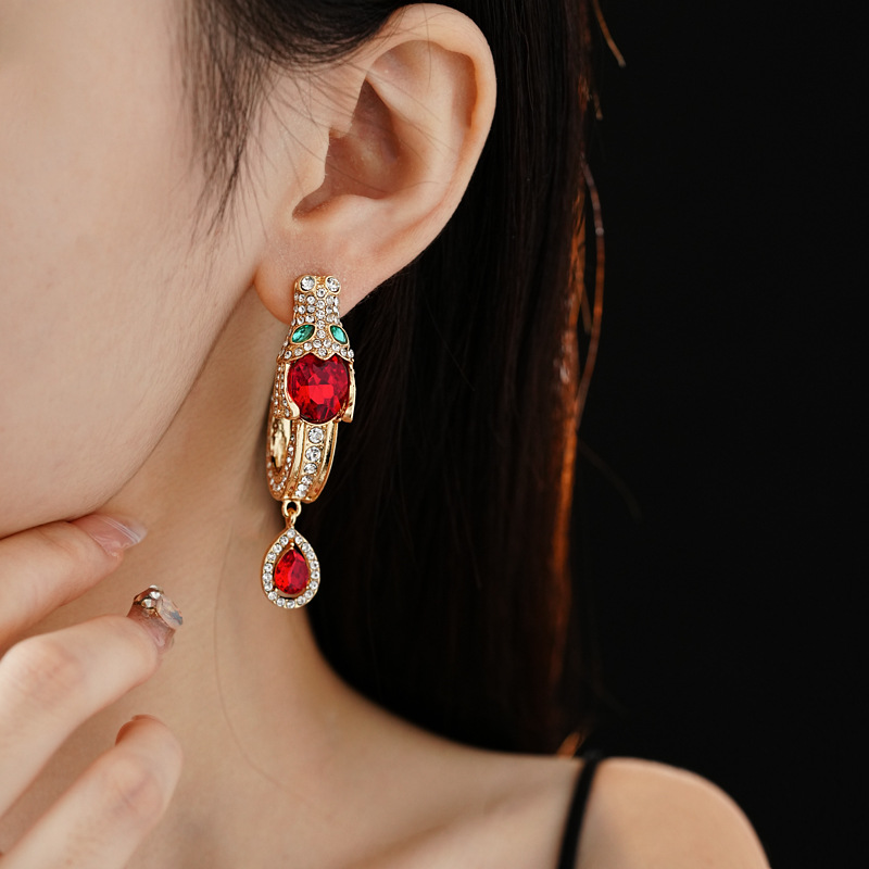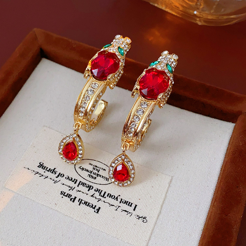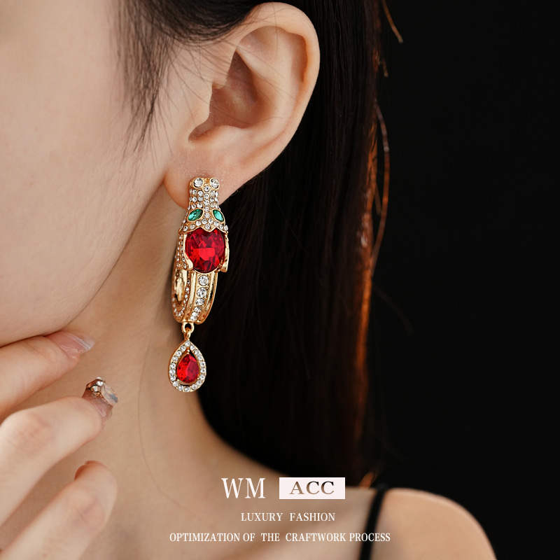 中古vintage银针耳环镶钻龙头水滴耳钉气质轻奢高级感复古耳饰女 投诉