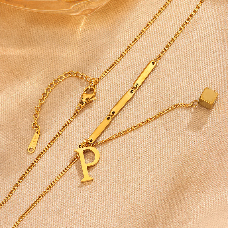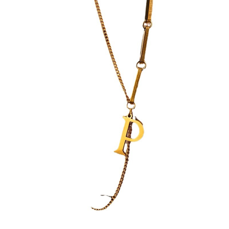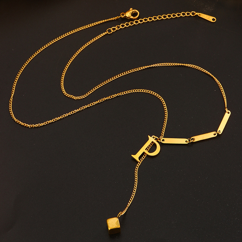 定制时尚小众项链饰品钛钢流苏字母P女小方块吊坠个性气质首饰
