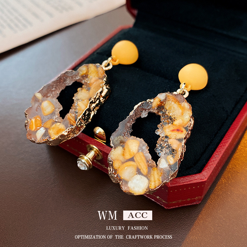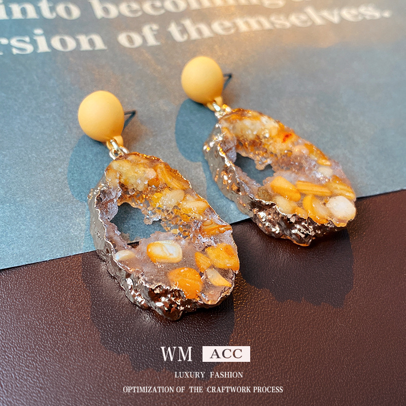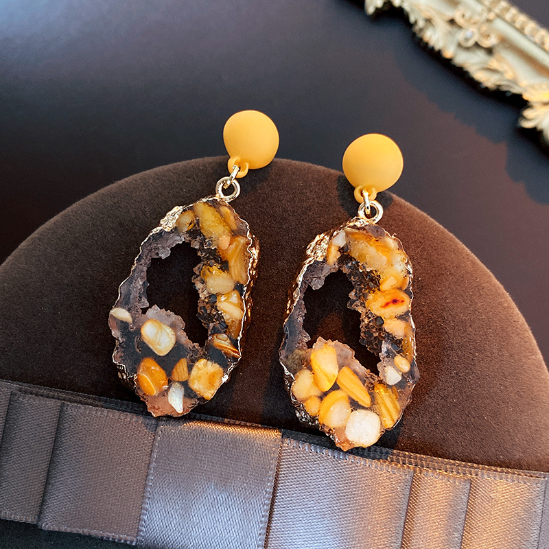 中古vintage银针耳环黄色镂空椭圆耳钉时尚百搭高级感气质耳饰女 投诉