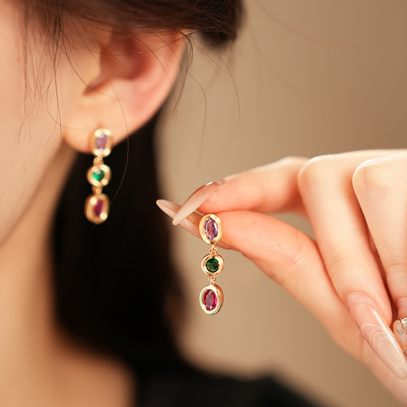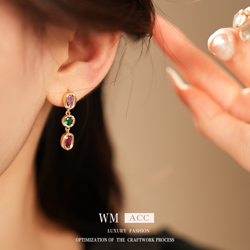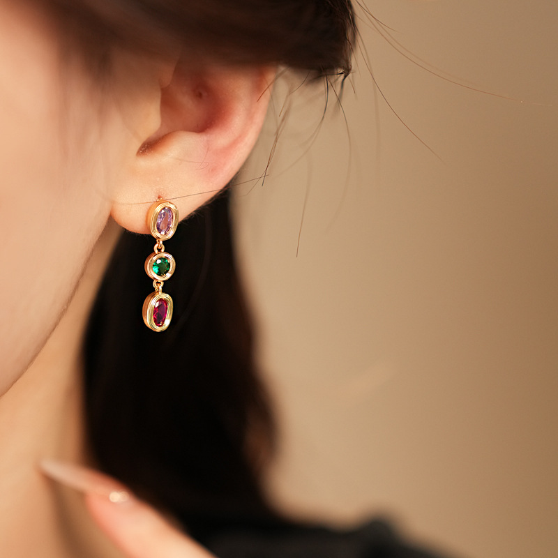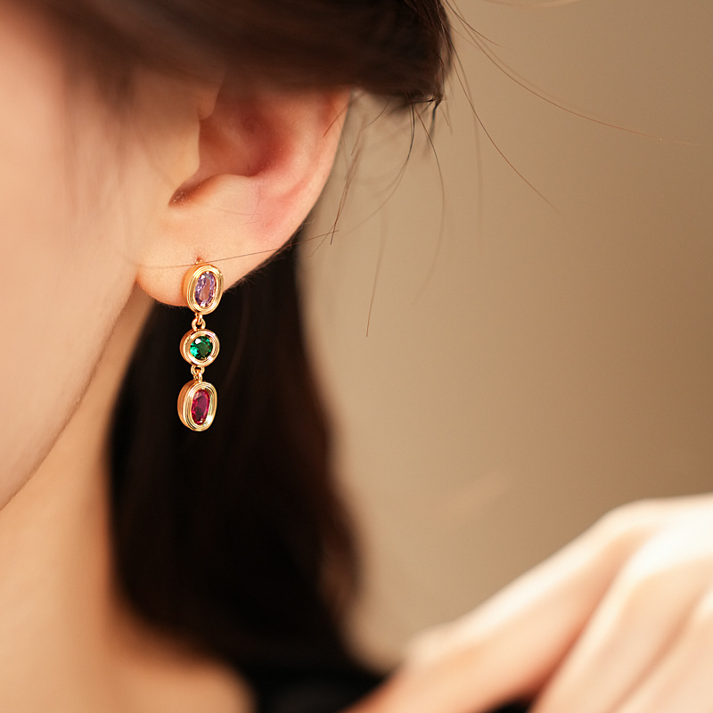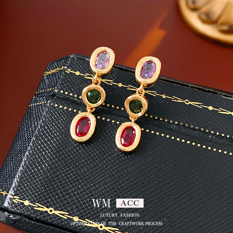 中古vintage耳环银针锆石欧美轻奢高级感耳钉时尚设计感简约耳饰
