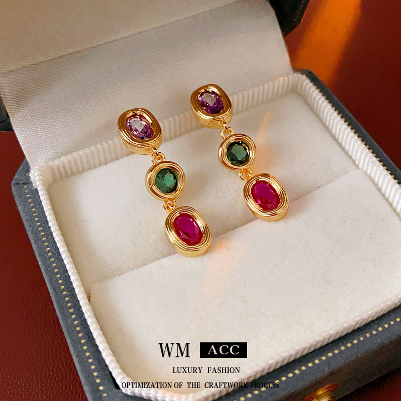 中古vintage耳环银针锆石欧美轻奢高级感耳钉时尚设计感简约耳饰 投诉