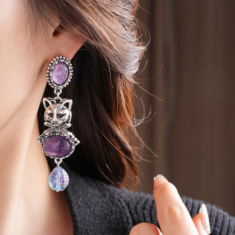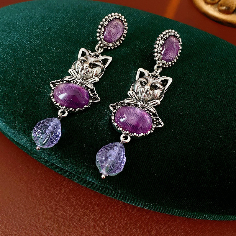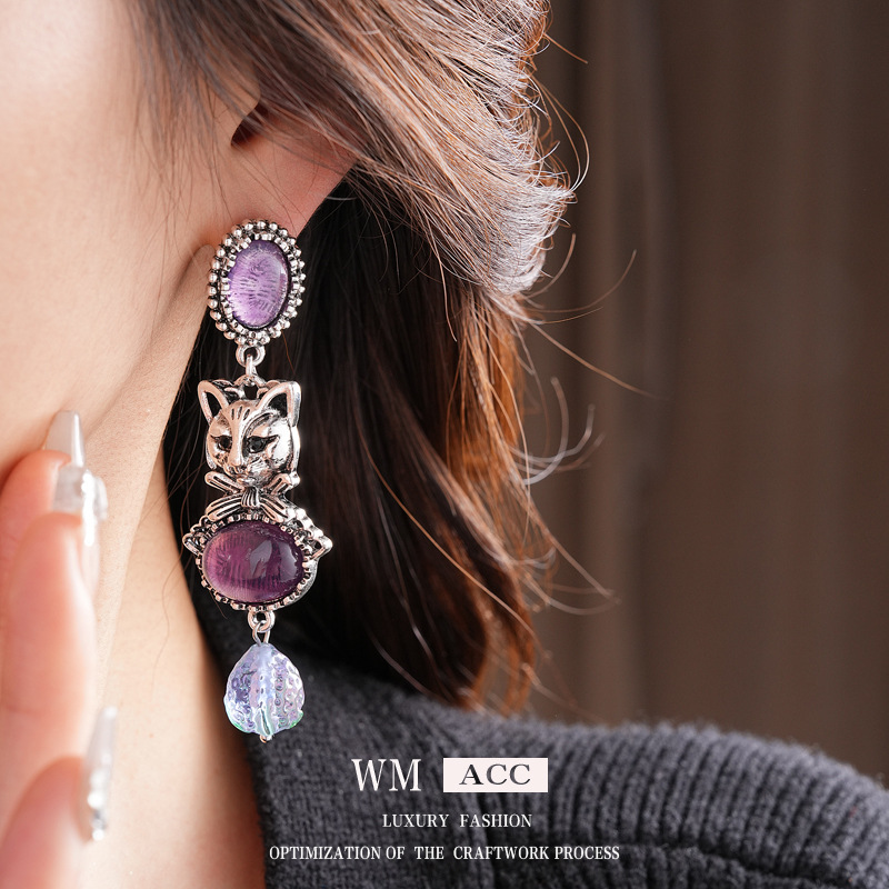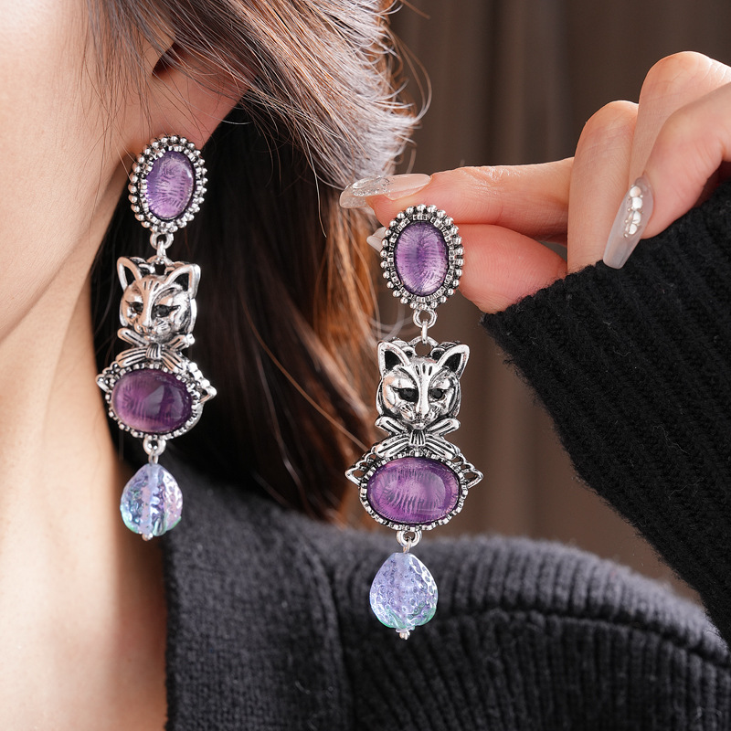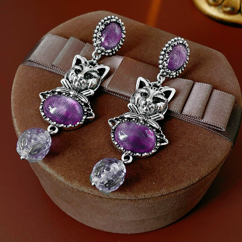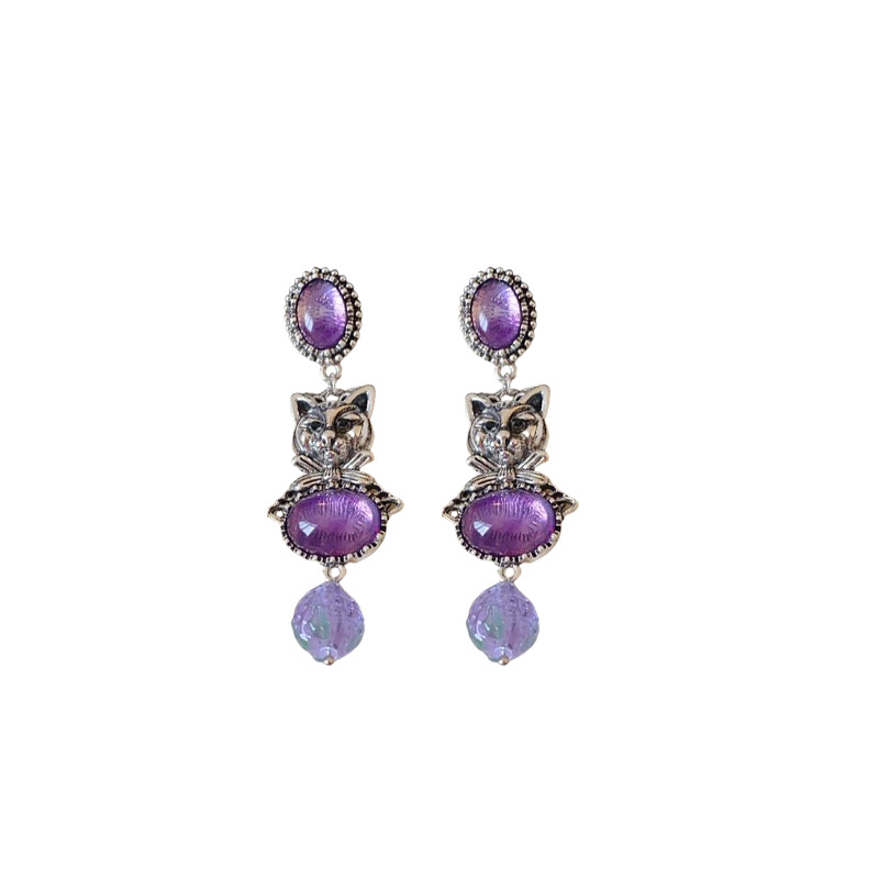 中古vintage镶钻耳环银针小猫椭圆形耳钉百搭高级感重工夸张耳饰 投诉