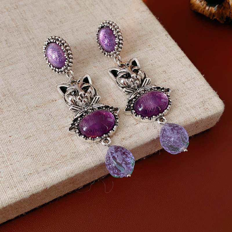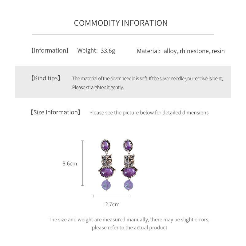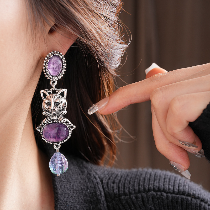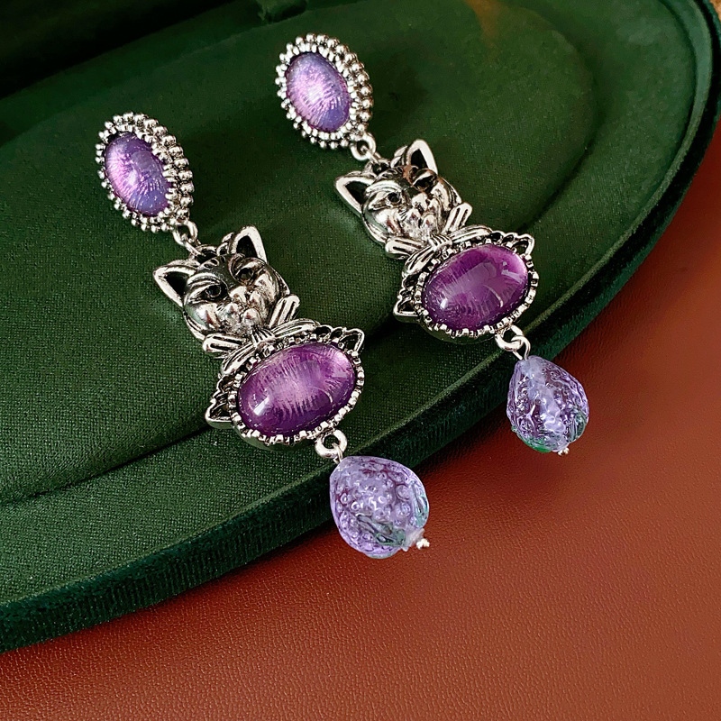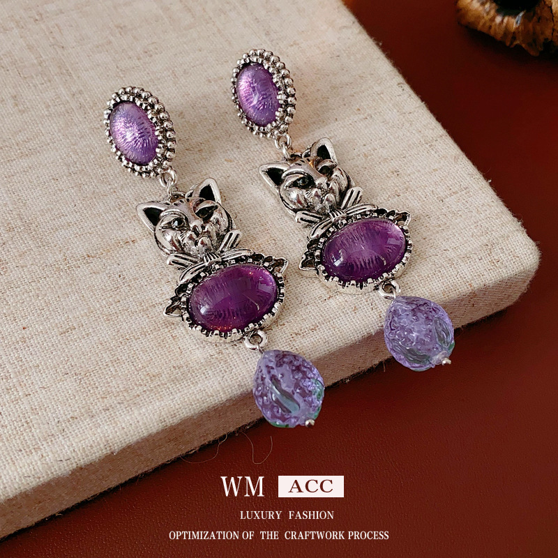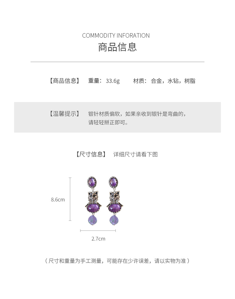 中古vintage镶钻耳环银针小猫椭圆形耳钉百搭高级感重工夸张耳饰 投诉
