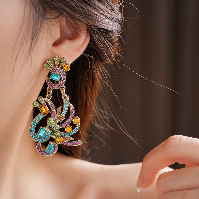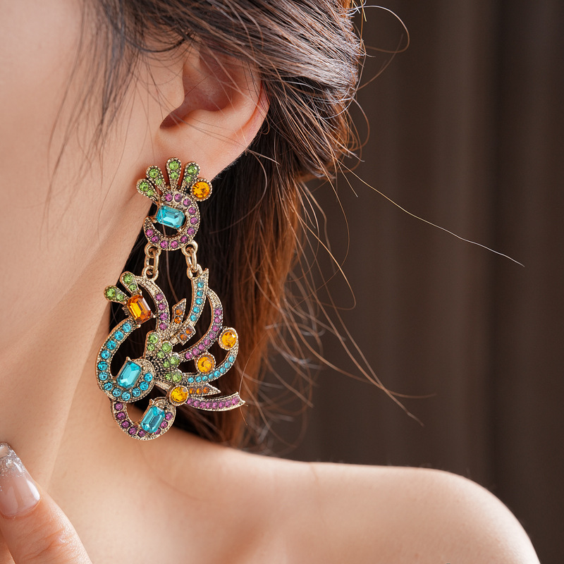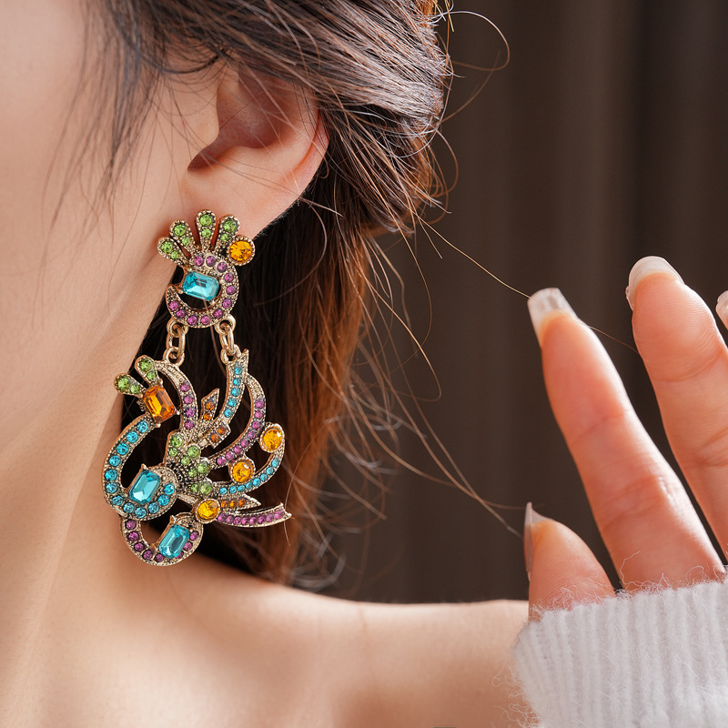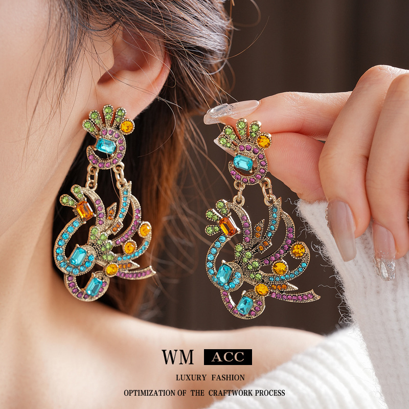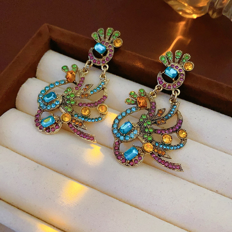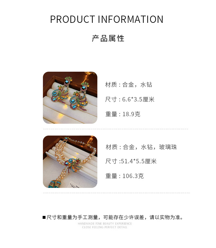 中古vintage镶钻套装银针孔雀花朵耳环小众复古轻奢高级感项链女 投诉