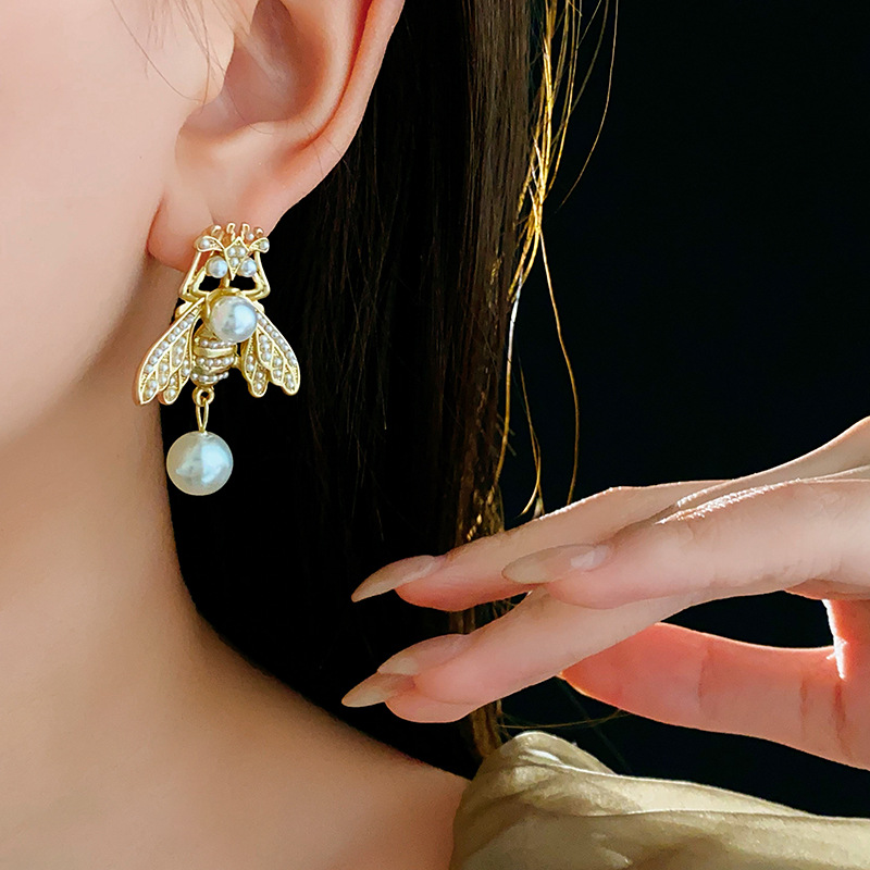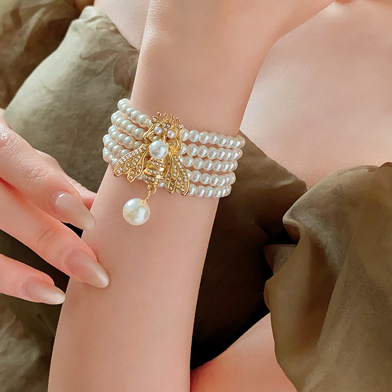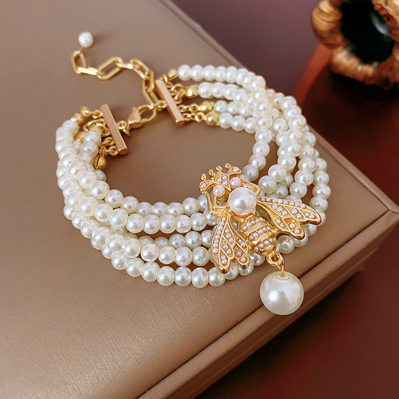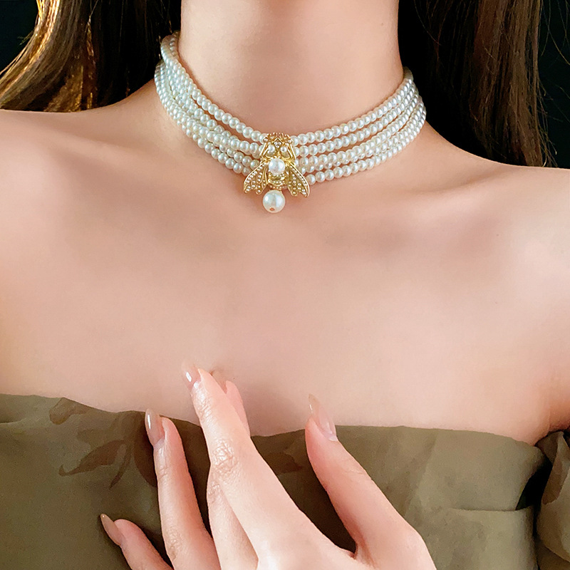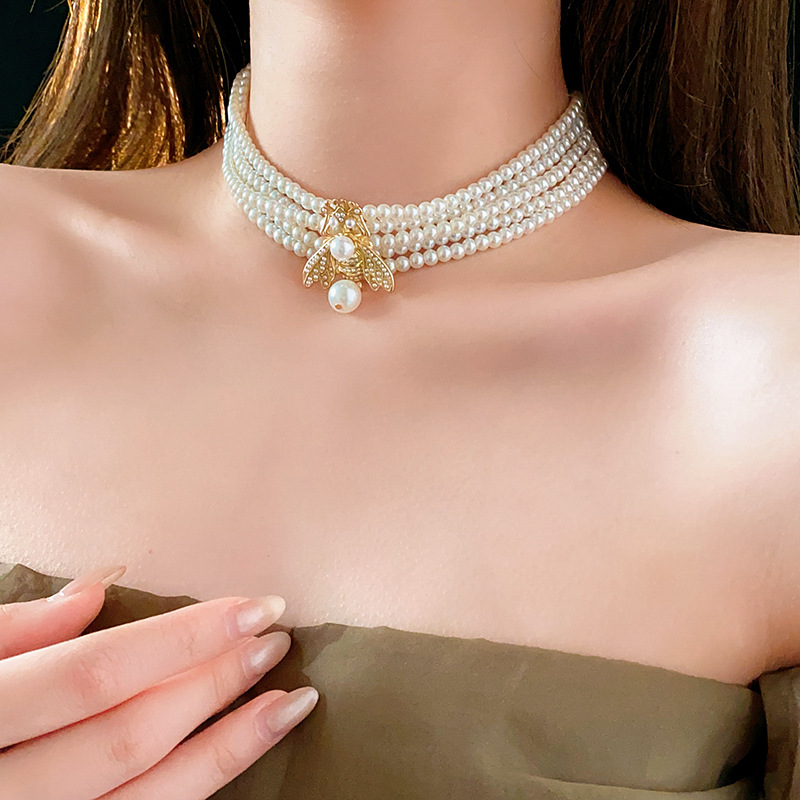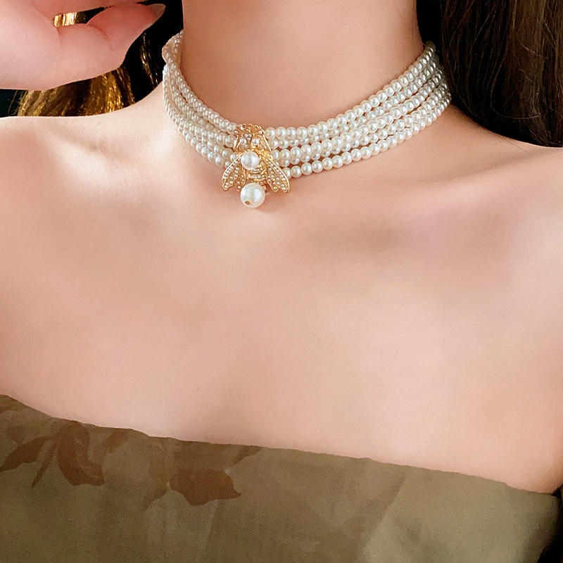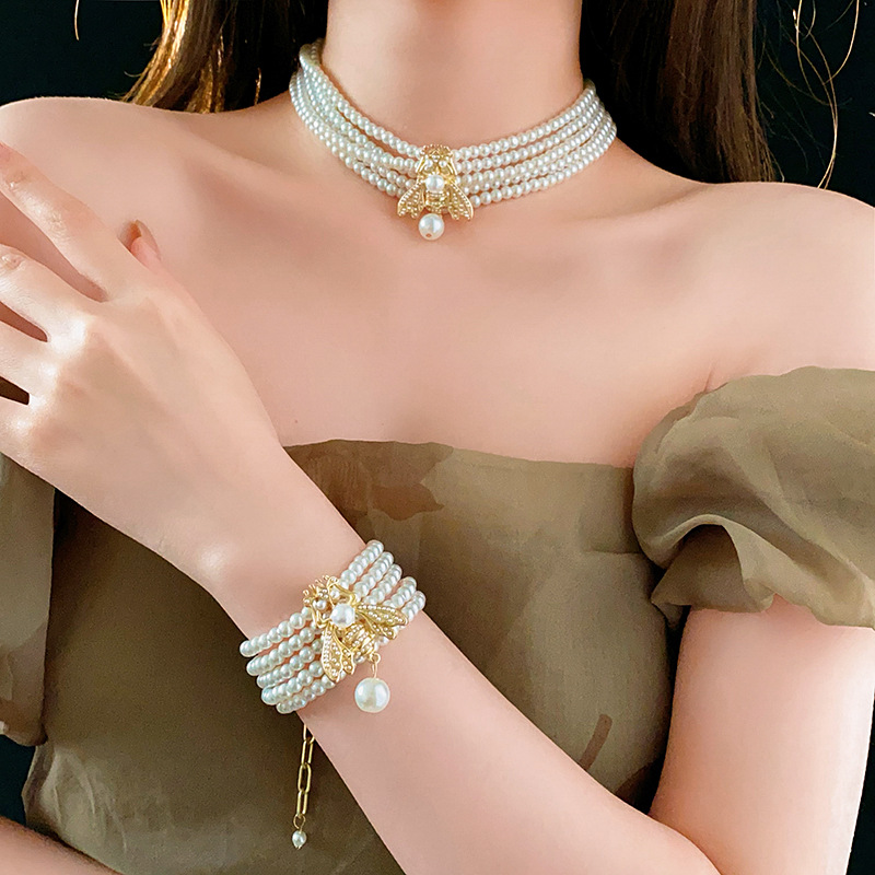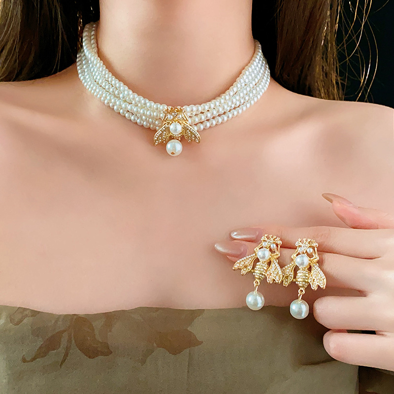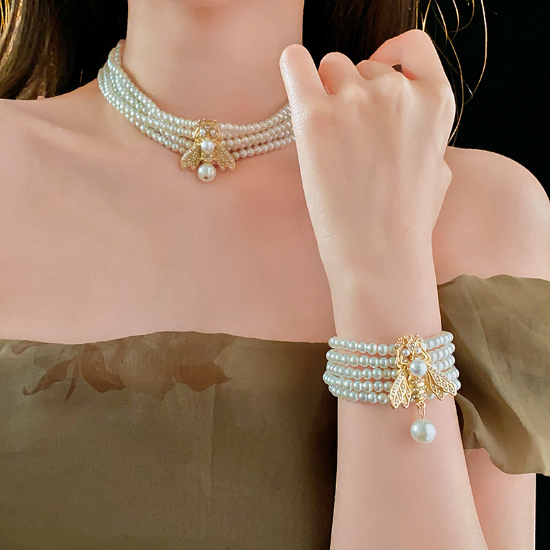 中古vintage项链复古法式蜜蜂珍珠款串珠项链小众高级感首饰套装