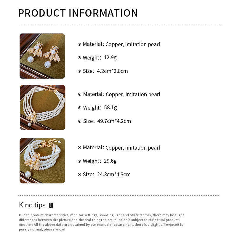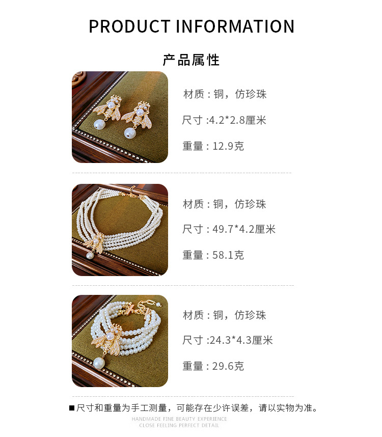 中古vintage项链复古法式蜜蜂珍珠款串珠项链小众高级感首饰套装 投诉
