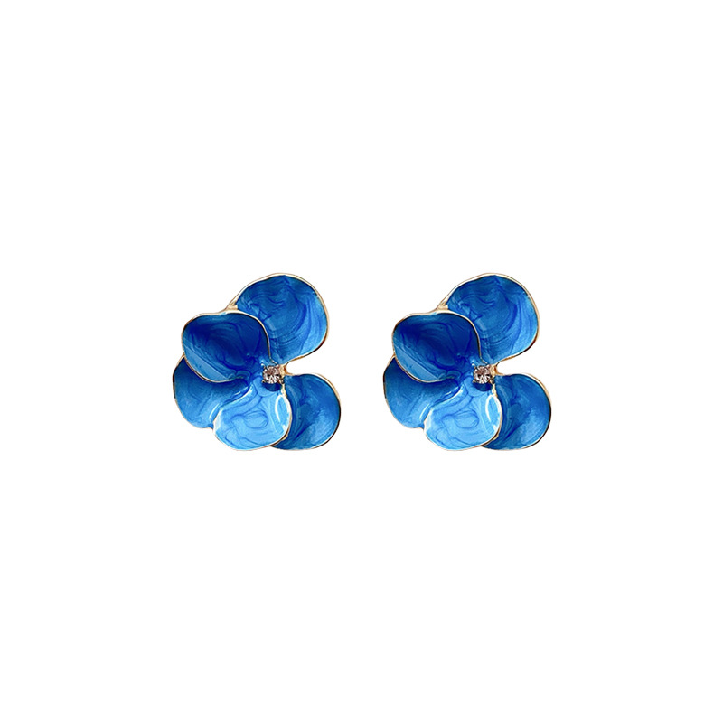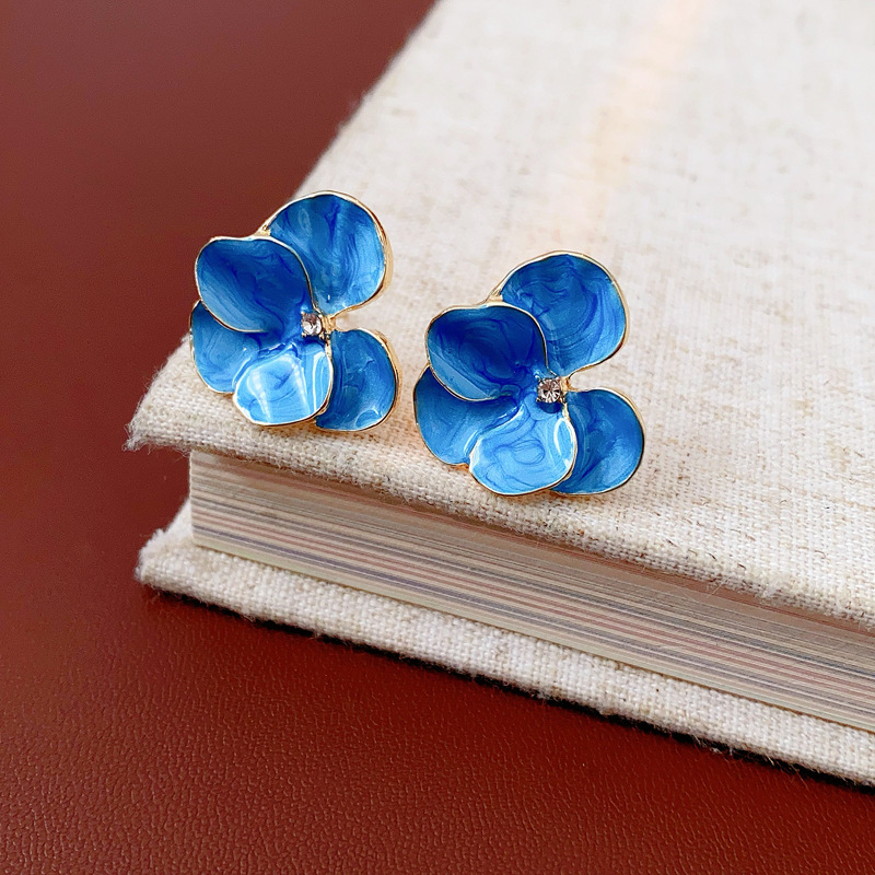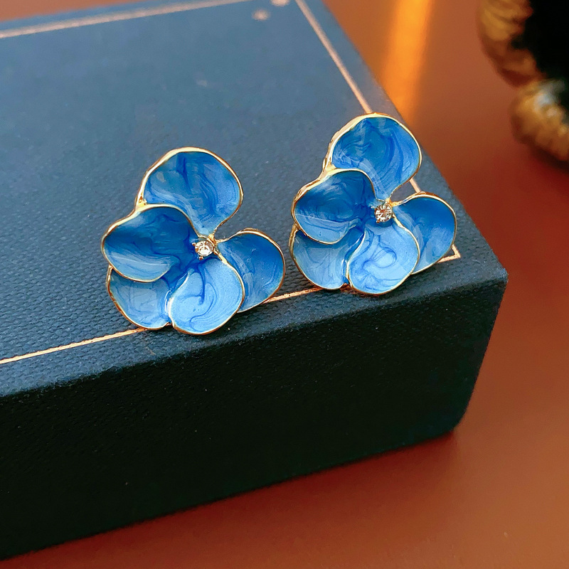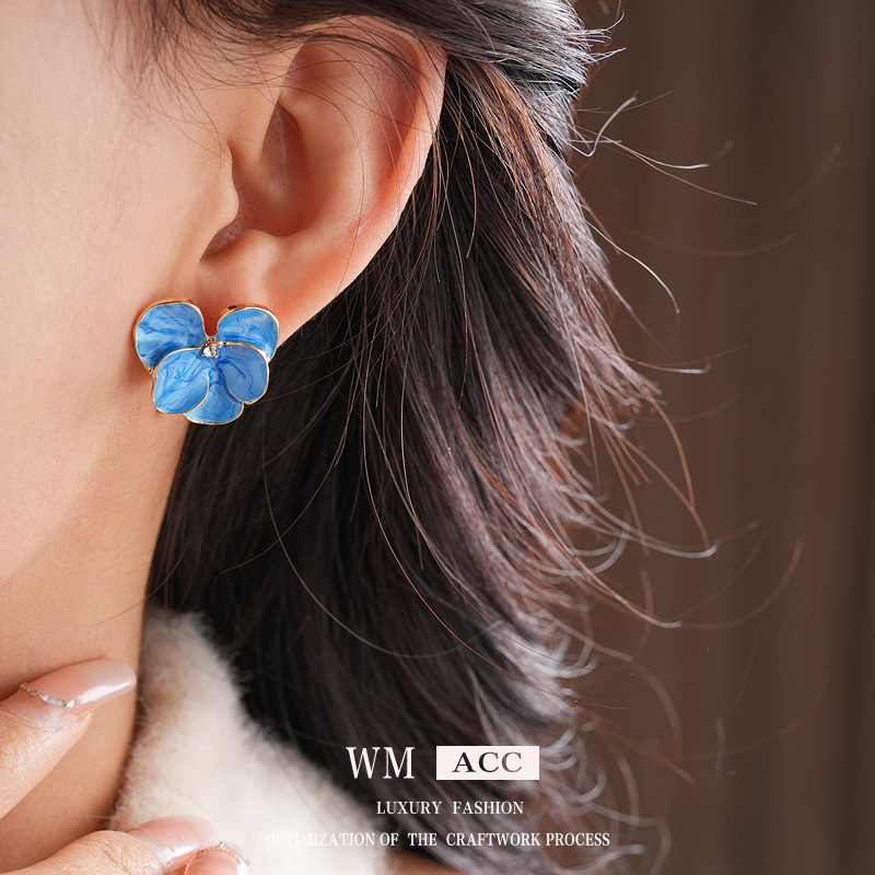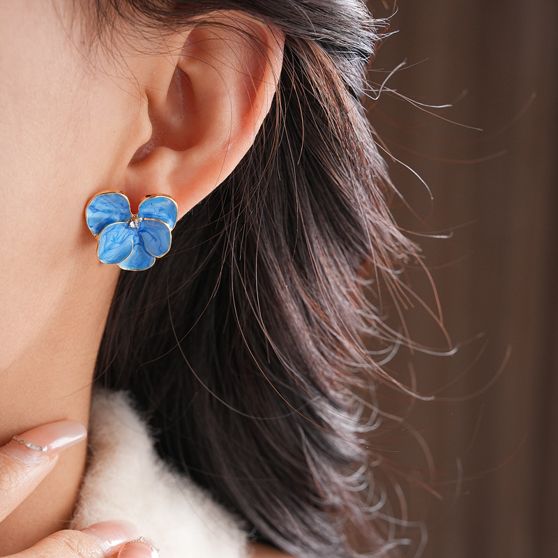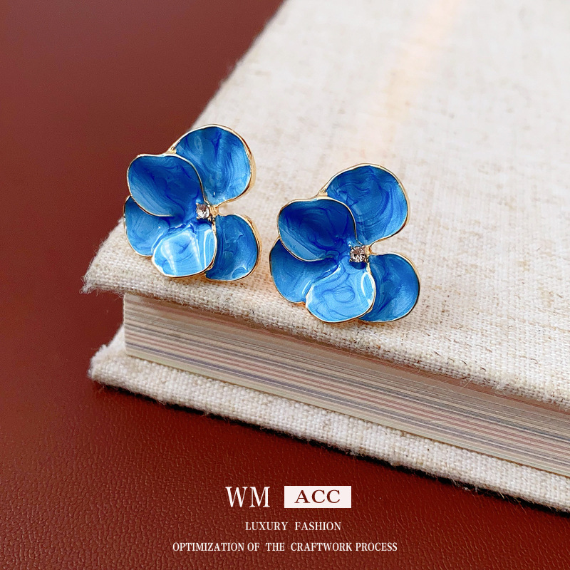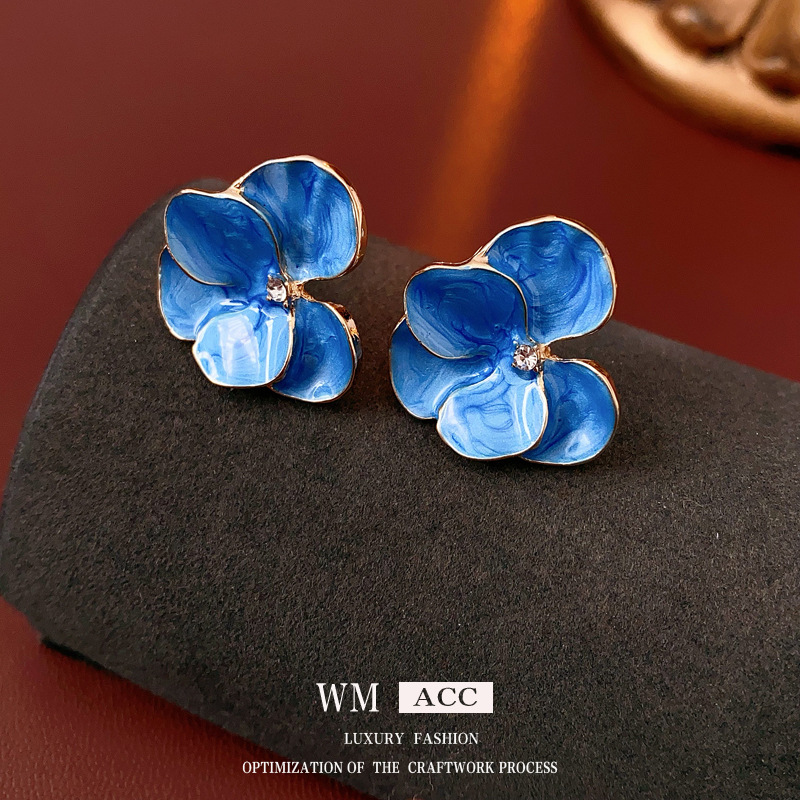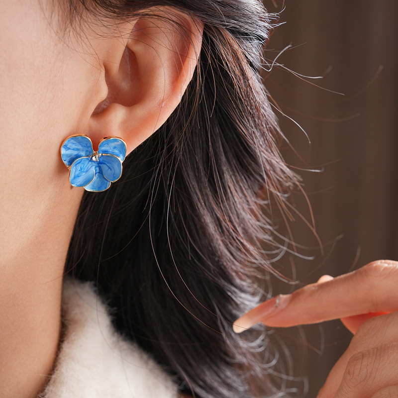 中古vintage花朵耳环银针镶钻滴油花瓣耳钉百搭高级感复古耳饰女