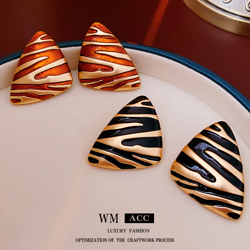 中古vintage银针耳环真金电镀花纹三角形耳钉复古轻奢高级感耳饰 投诉