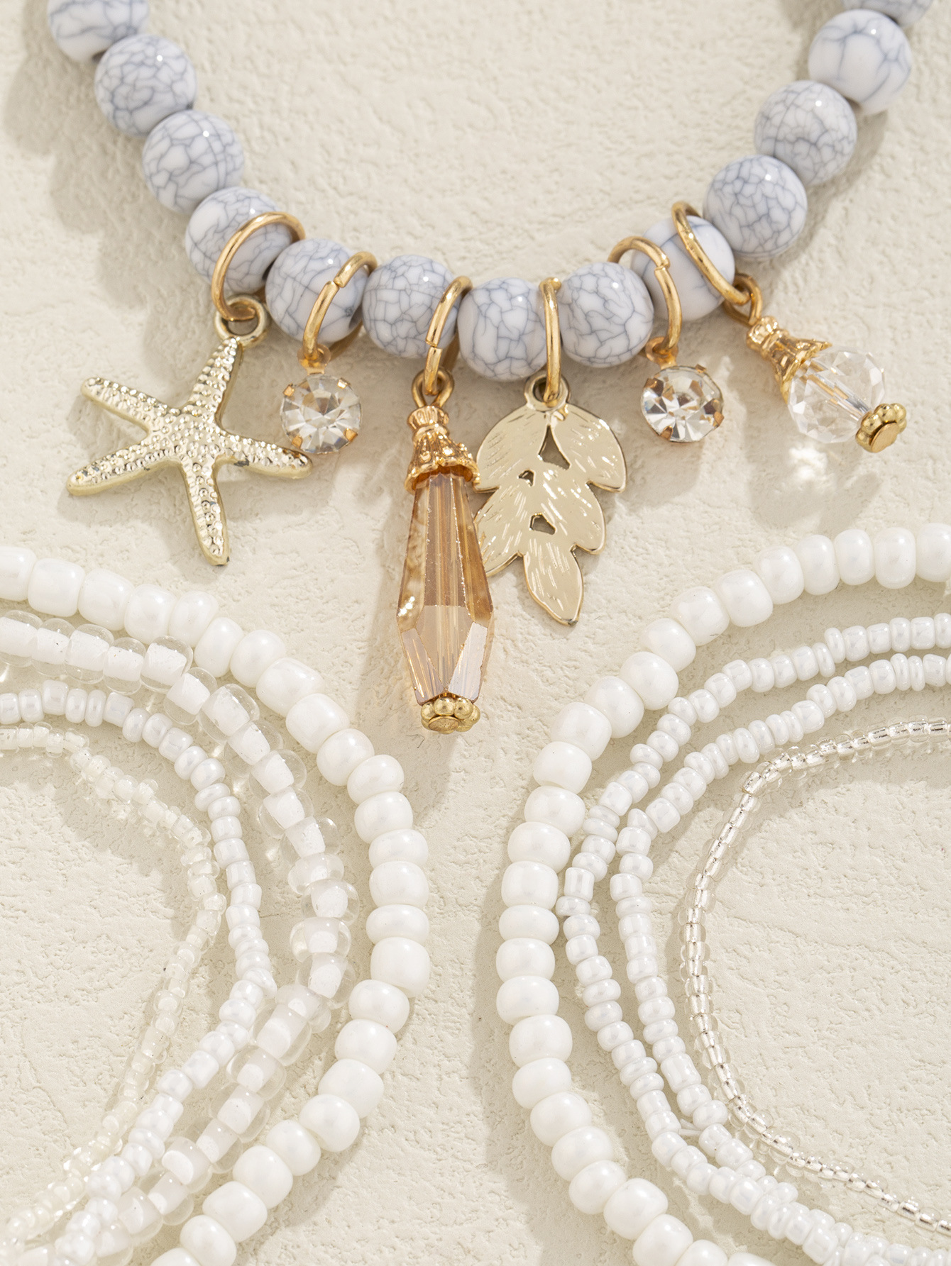爆款纯欲风海星水晶橄榄枝吊坠米珠叠戴手链龟裂石米珠多元素手串
