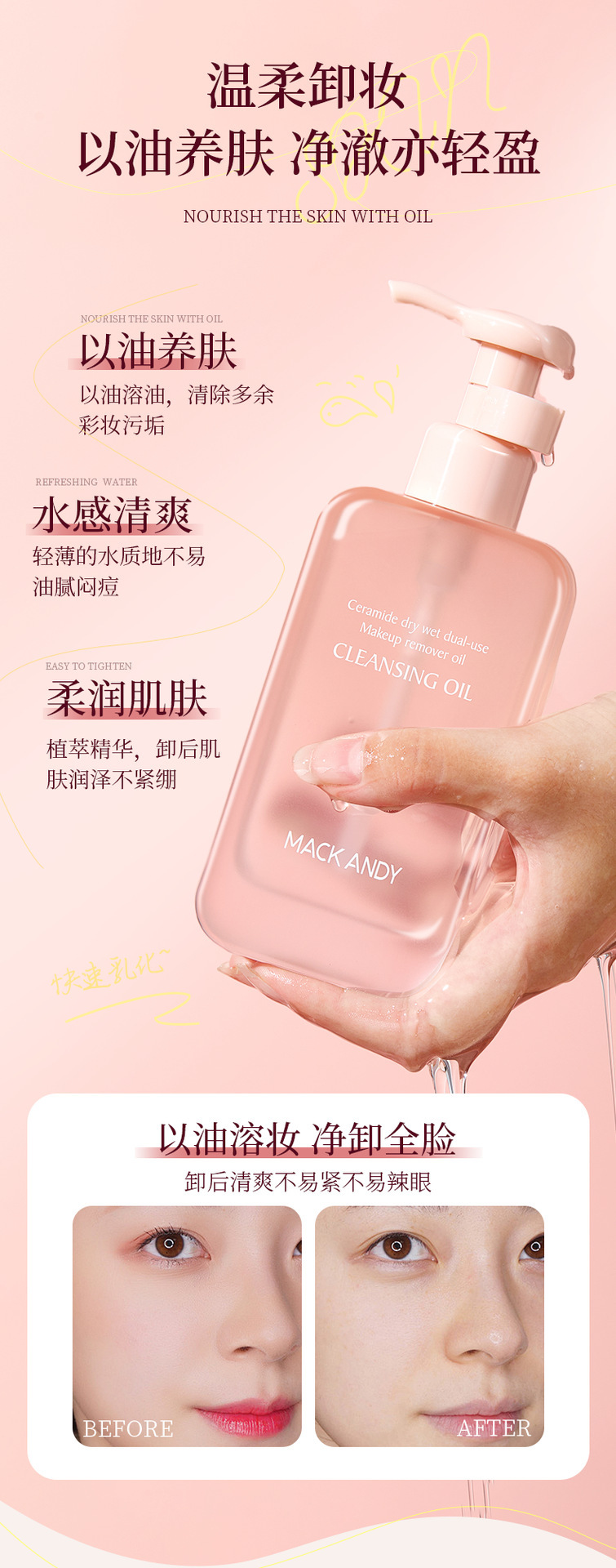 MACK ANDY玛可安迪神经酰胺卸妆油温和不刺激以油养肤净澈卸妆液
