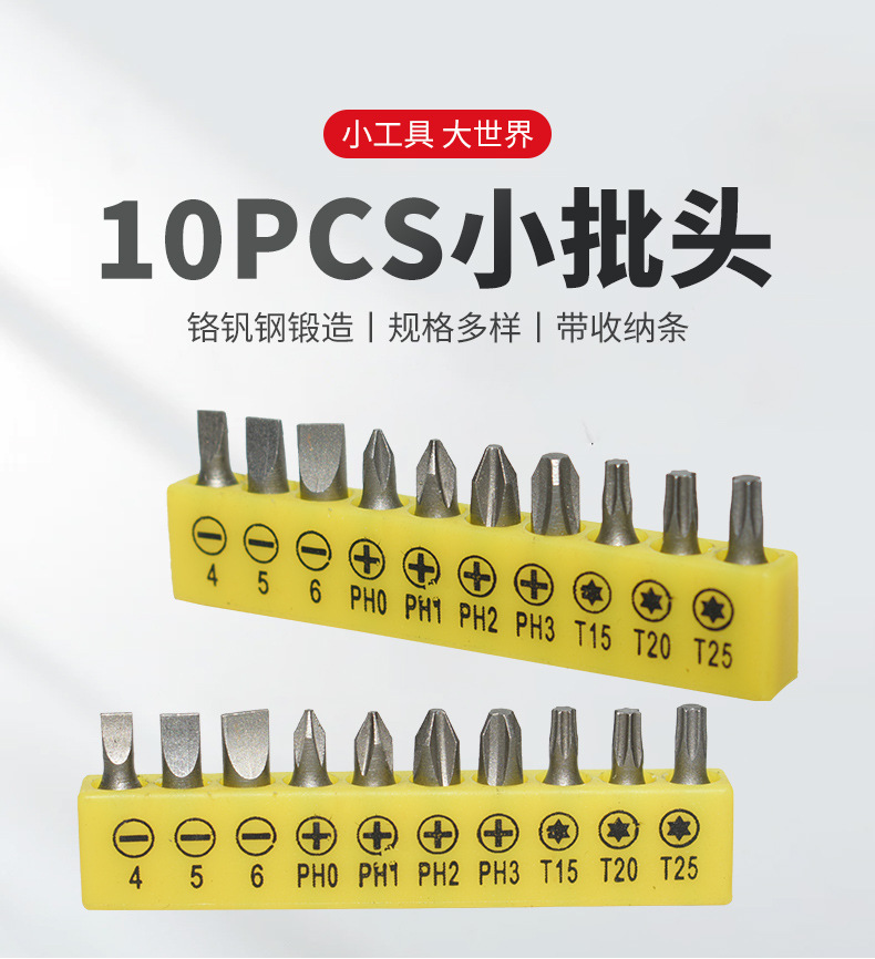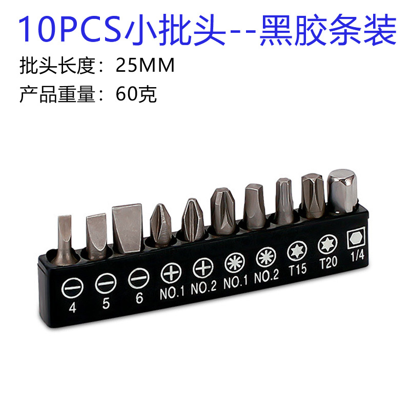 厂家定制10pcs风批头组套电钻配件一字十字螺丝刀内六角梅花批头