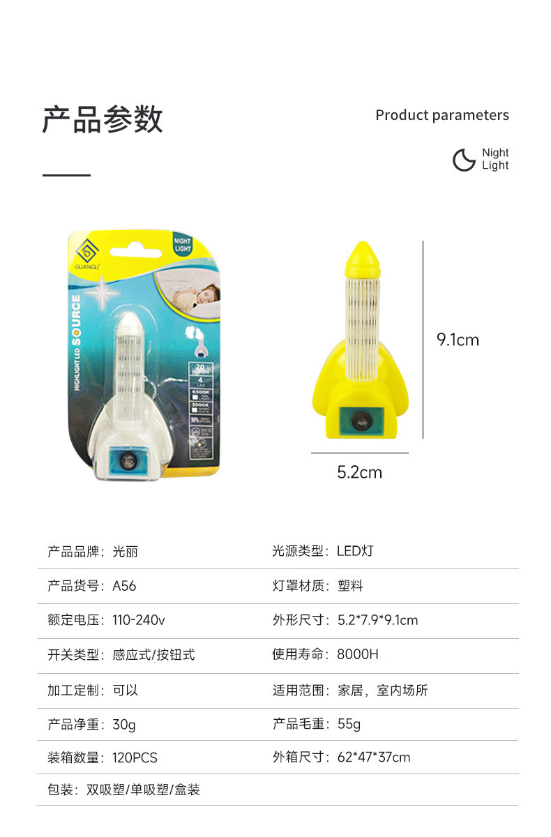 加工定制小夜灯LED插电光控感应护眼灯 卧室床头儿童伴睡灯喂奶灯