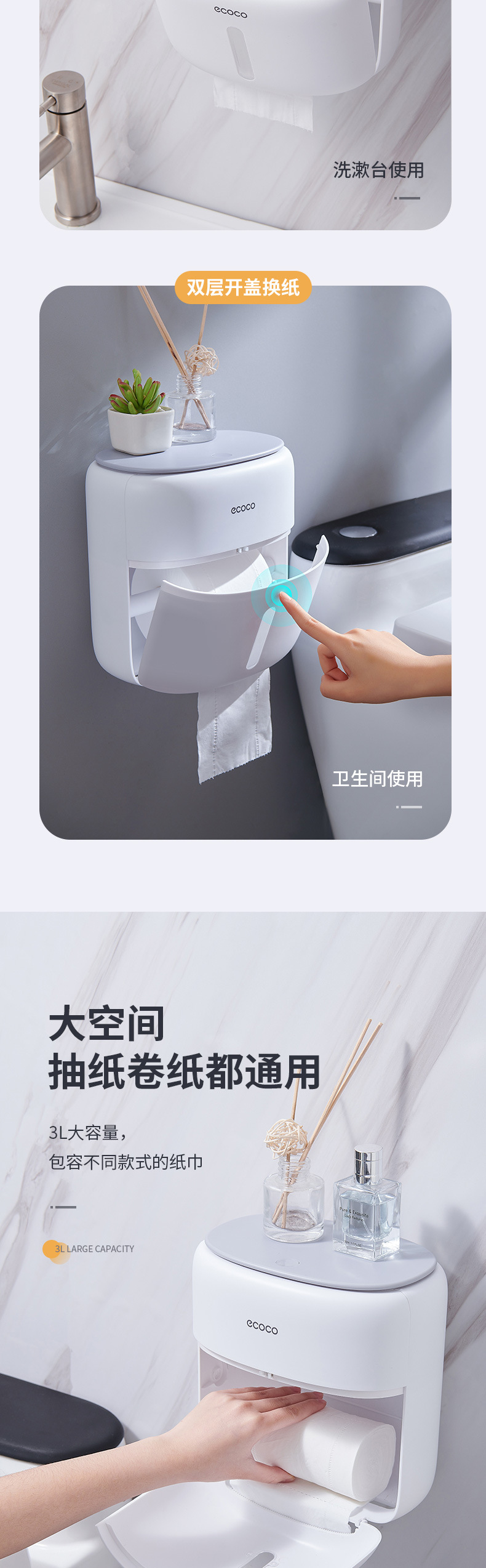 品牌: ecoco/意可可 是否进口: 否 材质: 塑料 适用纸巾: 卷纸 适用场合: 其他 型号: 纸巾盒 产地: 中山 箱装数量: 24/16 贸易属性: 内贸+外贸 加印LOGO: 不可以