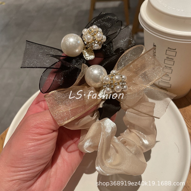人鱼姬大肠发圈珍珠蝴蝶结水钻发绳女孩皮筋时尚韩版发饰头绳头饰 English | 投诉