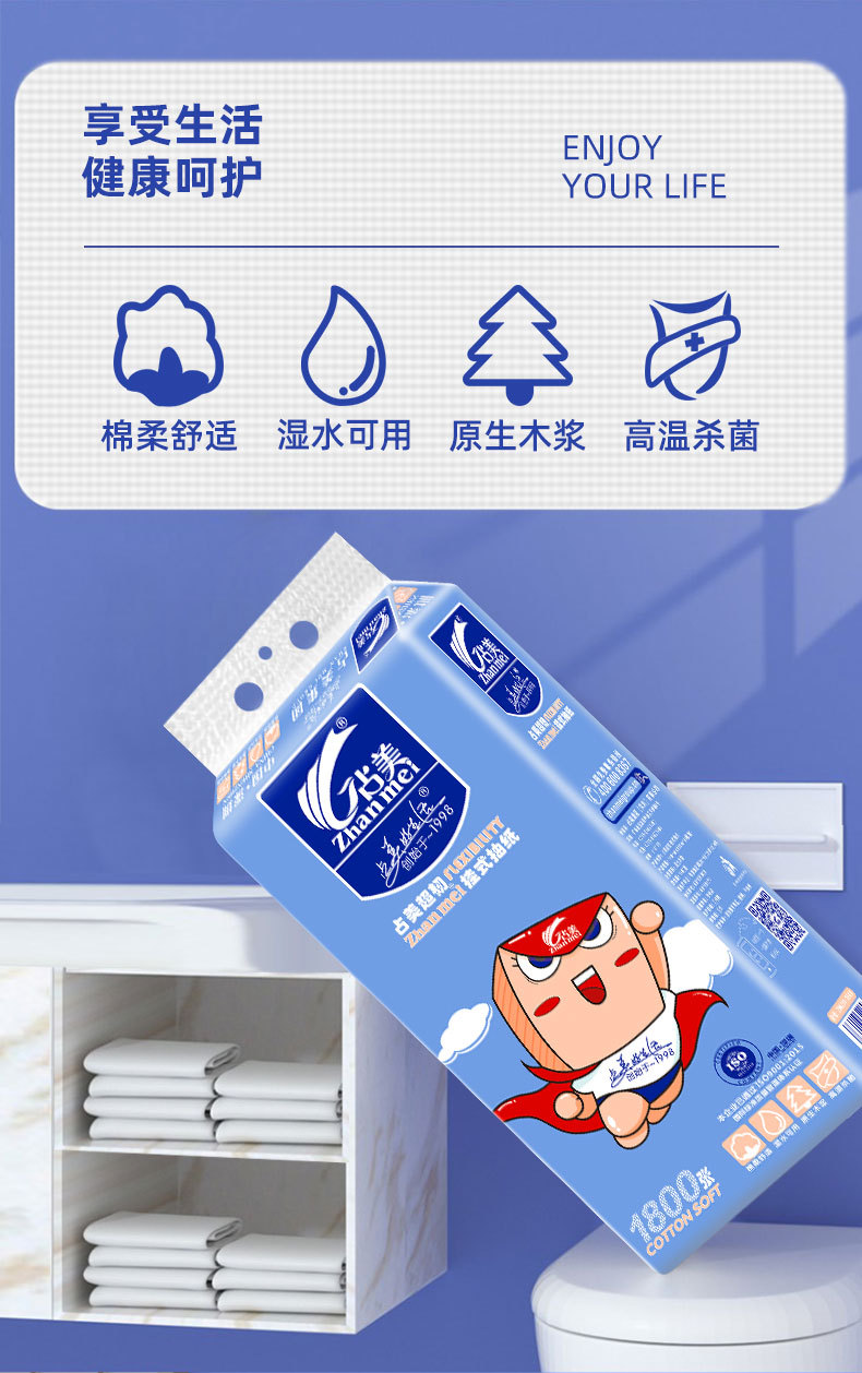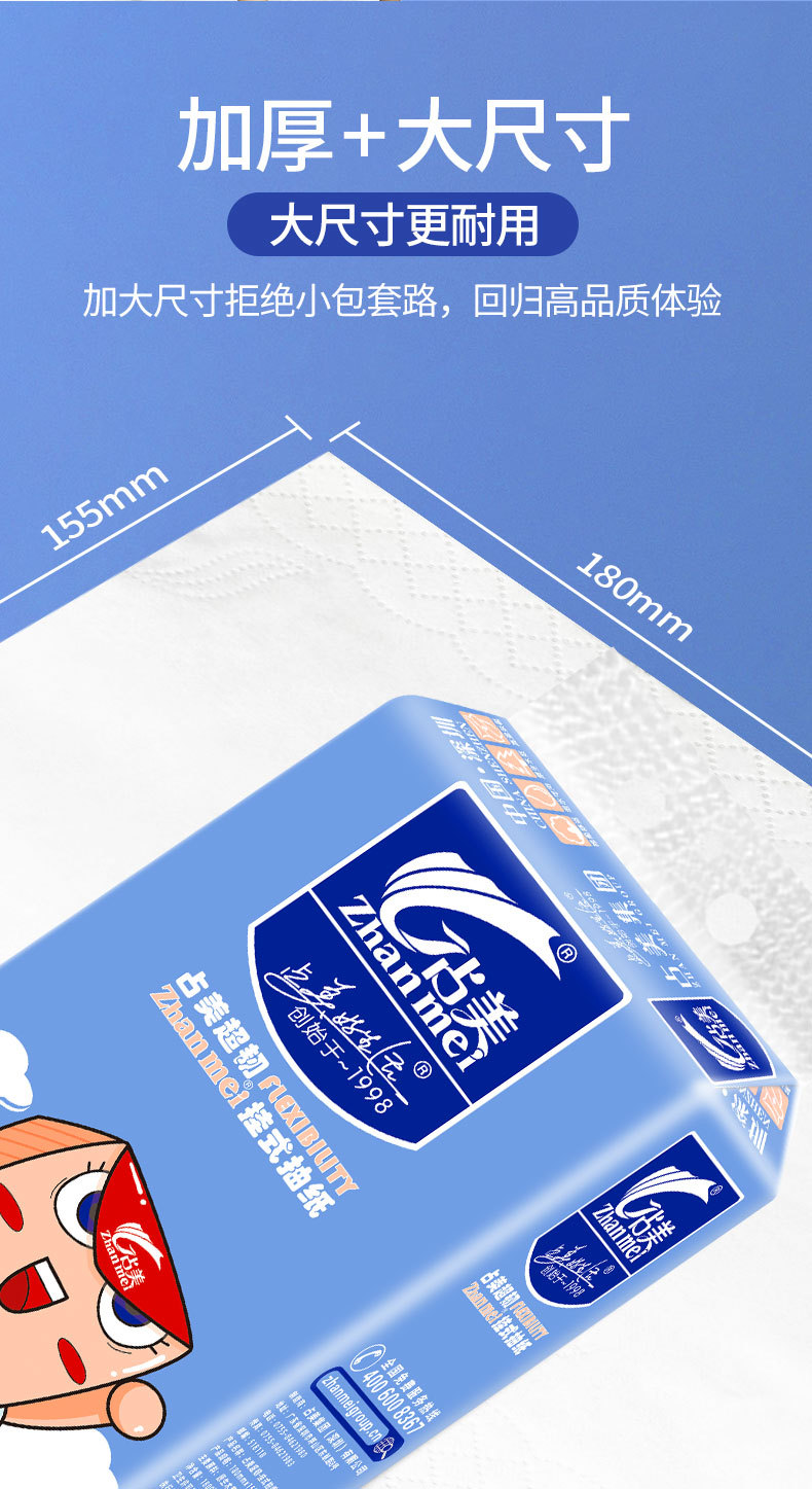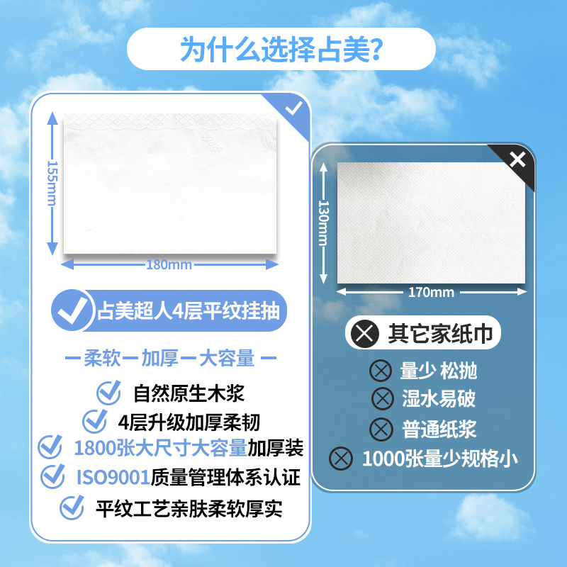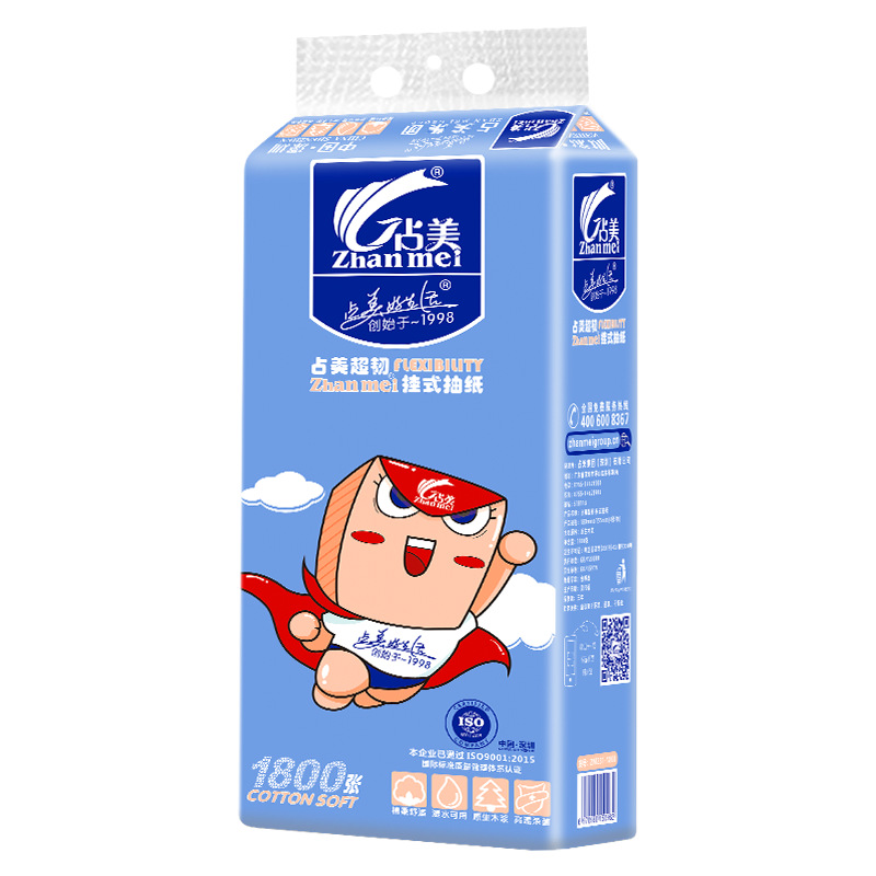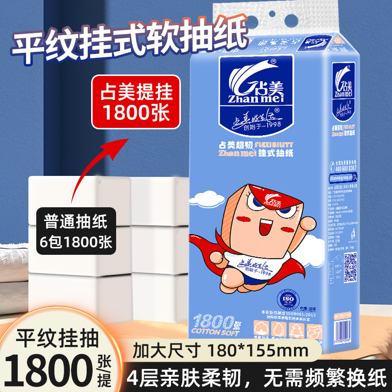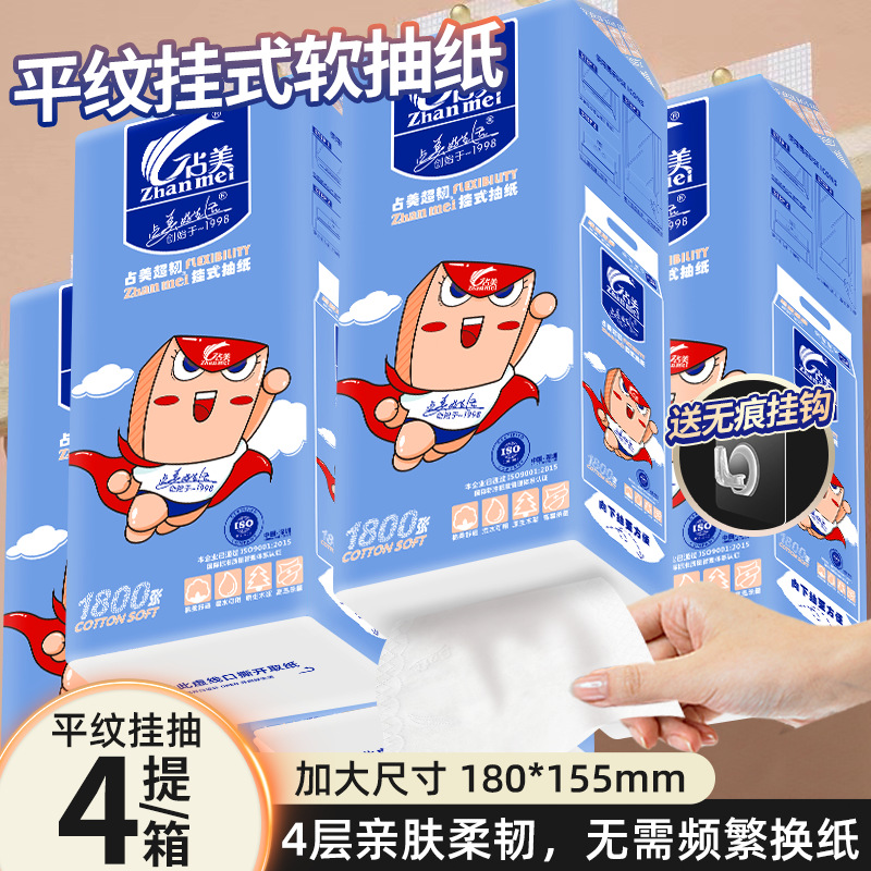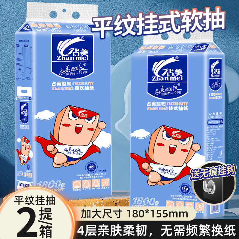占美1800张大包悬挂式大抽纸柔软厕所抽纸大号大克重挂抽纸巾挂纸 English | 投诉