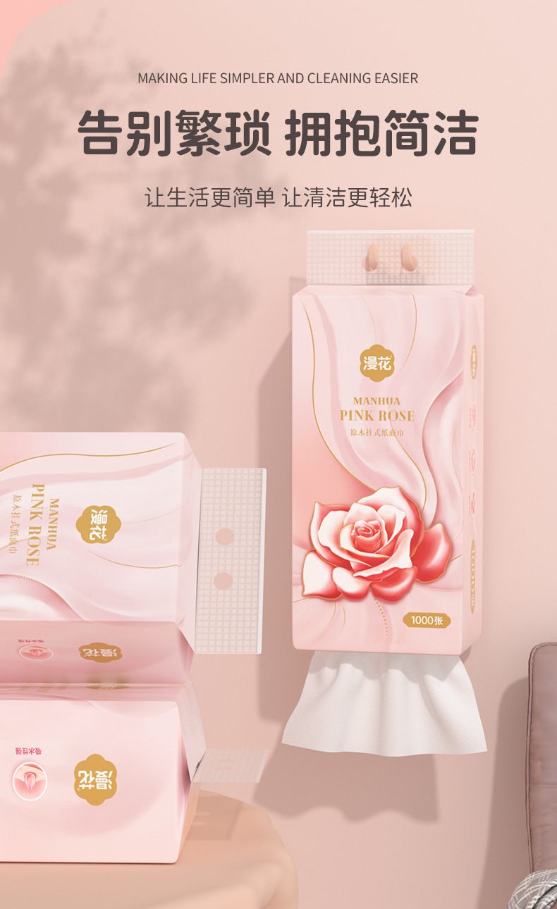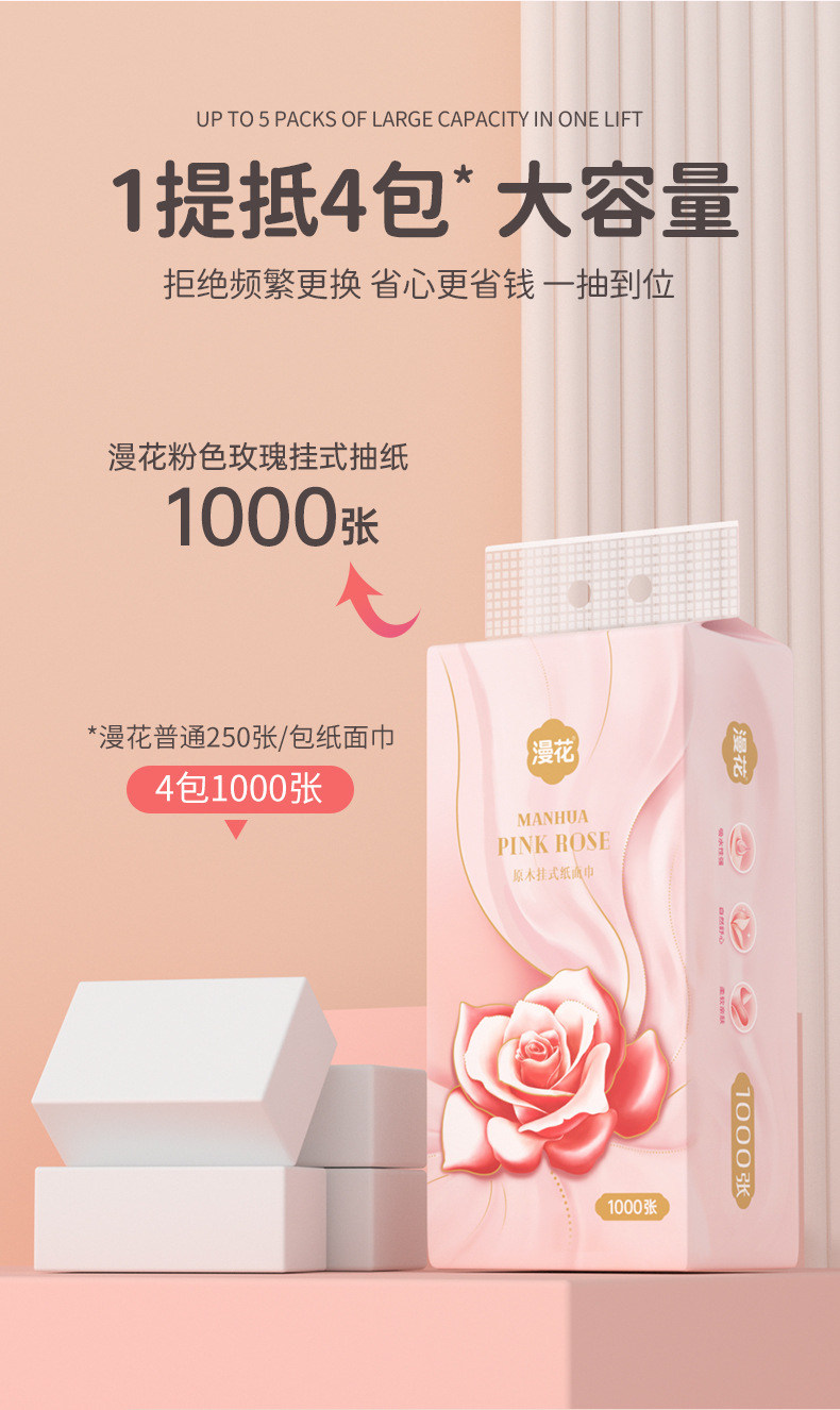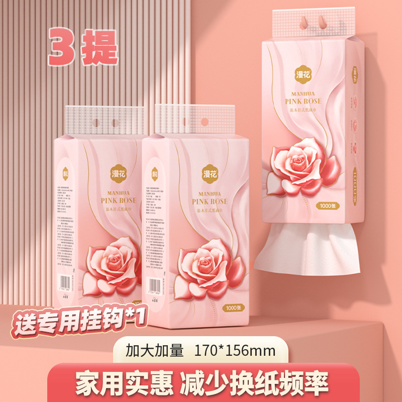 漫花挂式面巾纸1000张提装纸巾家用纸手帕原木抽纸整箱卫生纸代发 English | 投诉