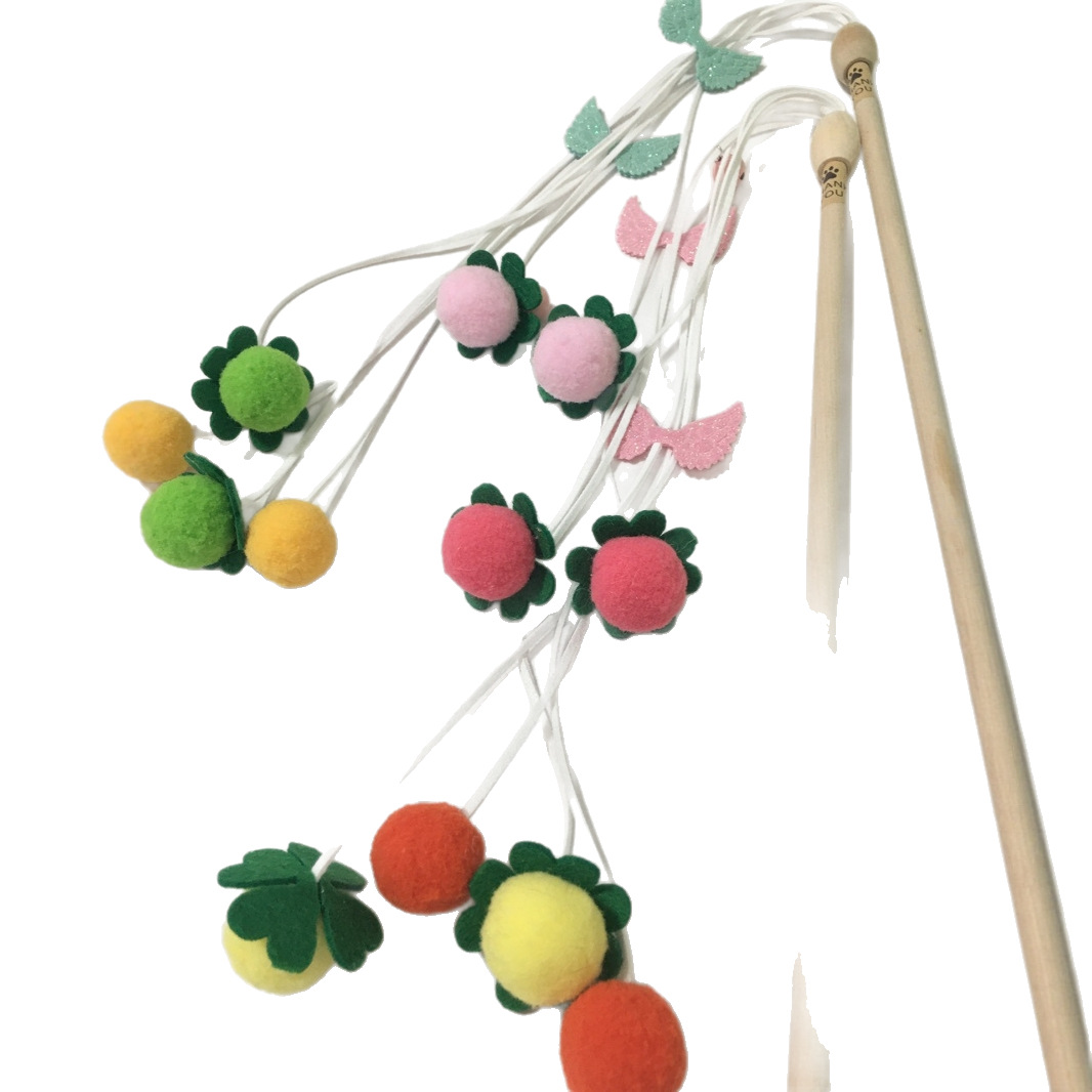 猫咪水果逗猫棒毛球撸猫棒 宠物玩具 厂家批发