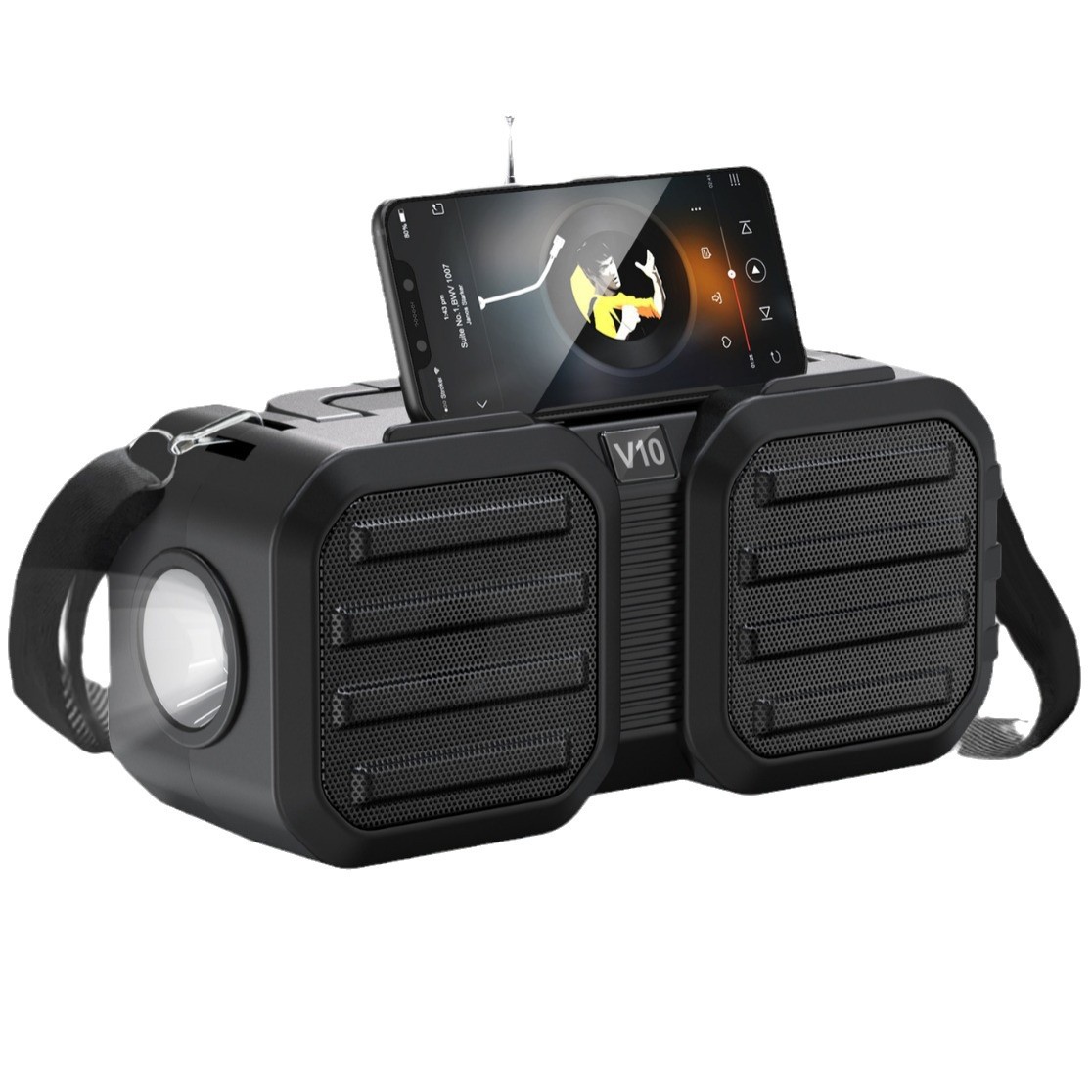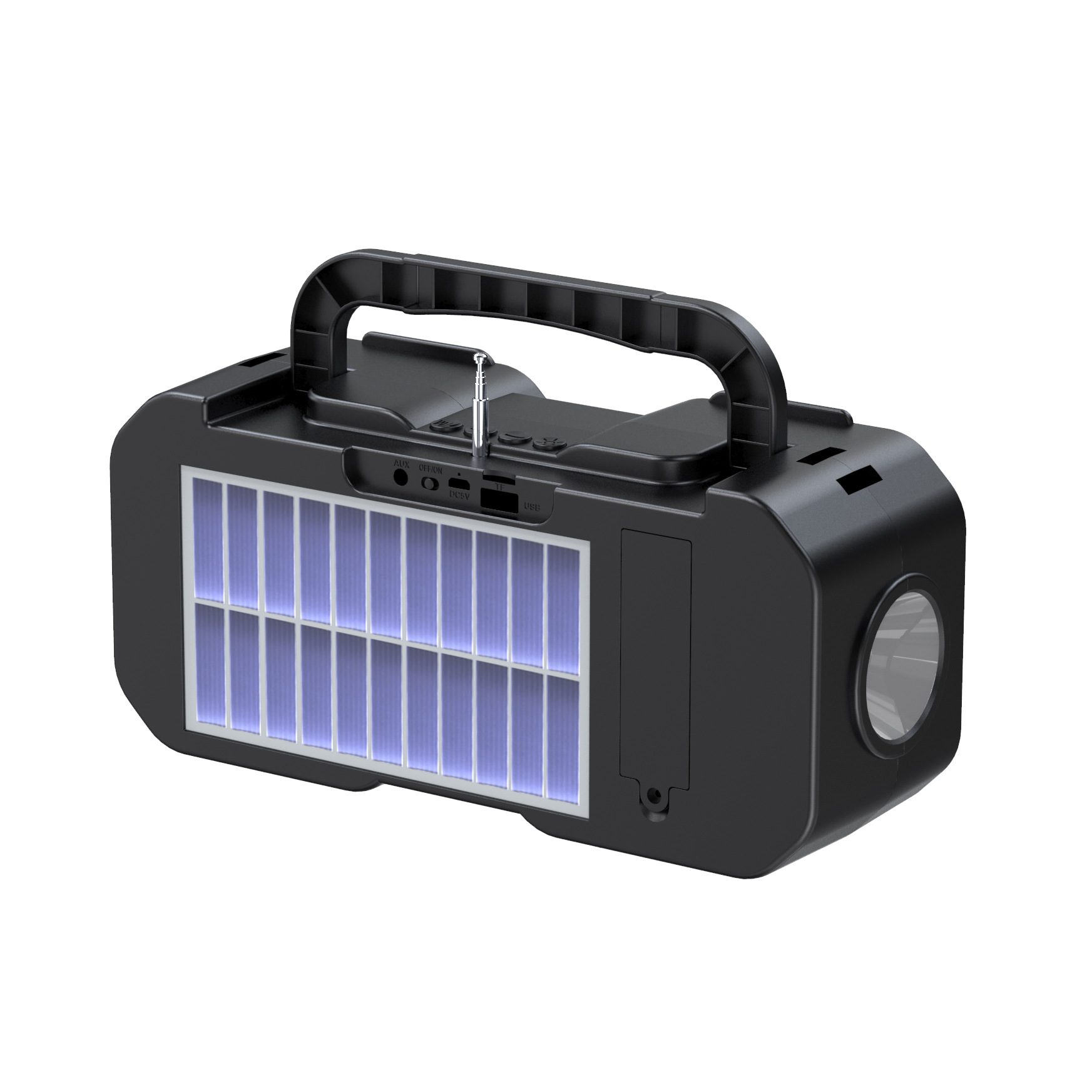 跨境太阳能蓝牙音箱便携插卡重低音炮户外无线音响家用应急手电筒