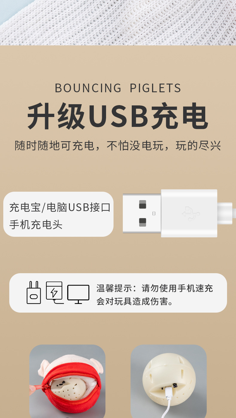 网红宠物充电线跳跳猪学声音小狗趣味发声宠物不倒翁磨牙解闷玩具 投诉