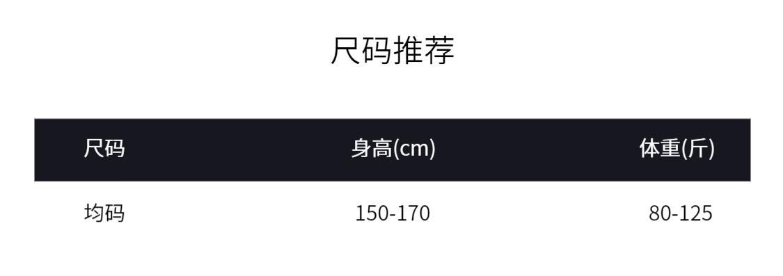 | 均码(70~125斤) | ¥0 | 9999976件可售 |